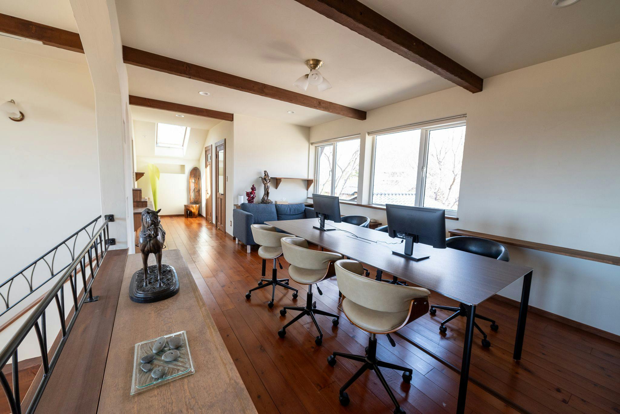 最大で10人宿泊できるReTune Villaは、広々としたつくり。リビングやテラス、寝室からは富士山が一望、庭が見える半露天風呂は八ヶ岳から湧く上質な井戸水を贅沢に使用し、離れでは大きな囲炉裏を囲んで団欒を。 サンルームに面したワークスペースに加え、2階には8人が座れるワークスペースを完備し、テラスでは景色を眺めながらの仕事もできます。 特別な空間で、日常を忘れてのんびりお過ごしください。