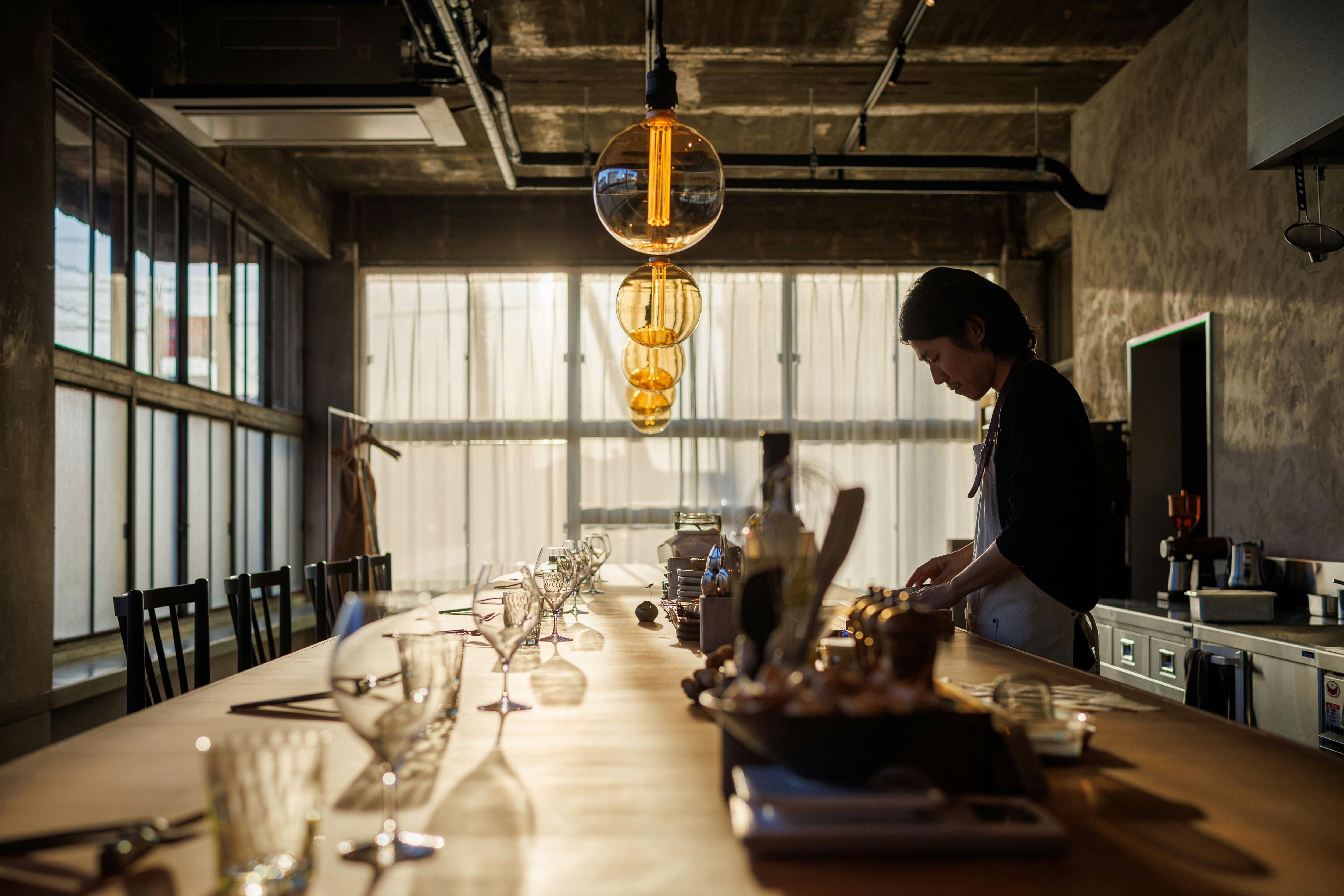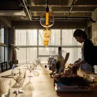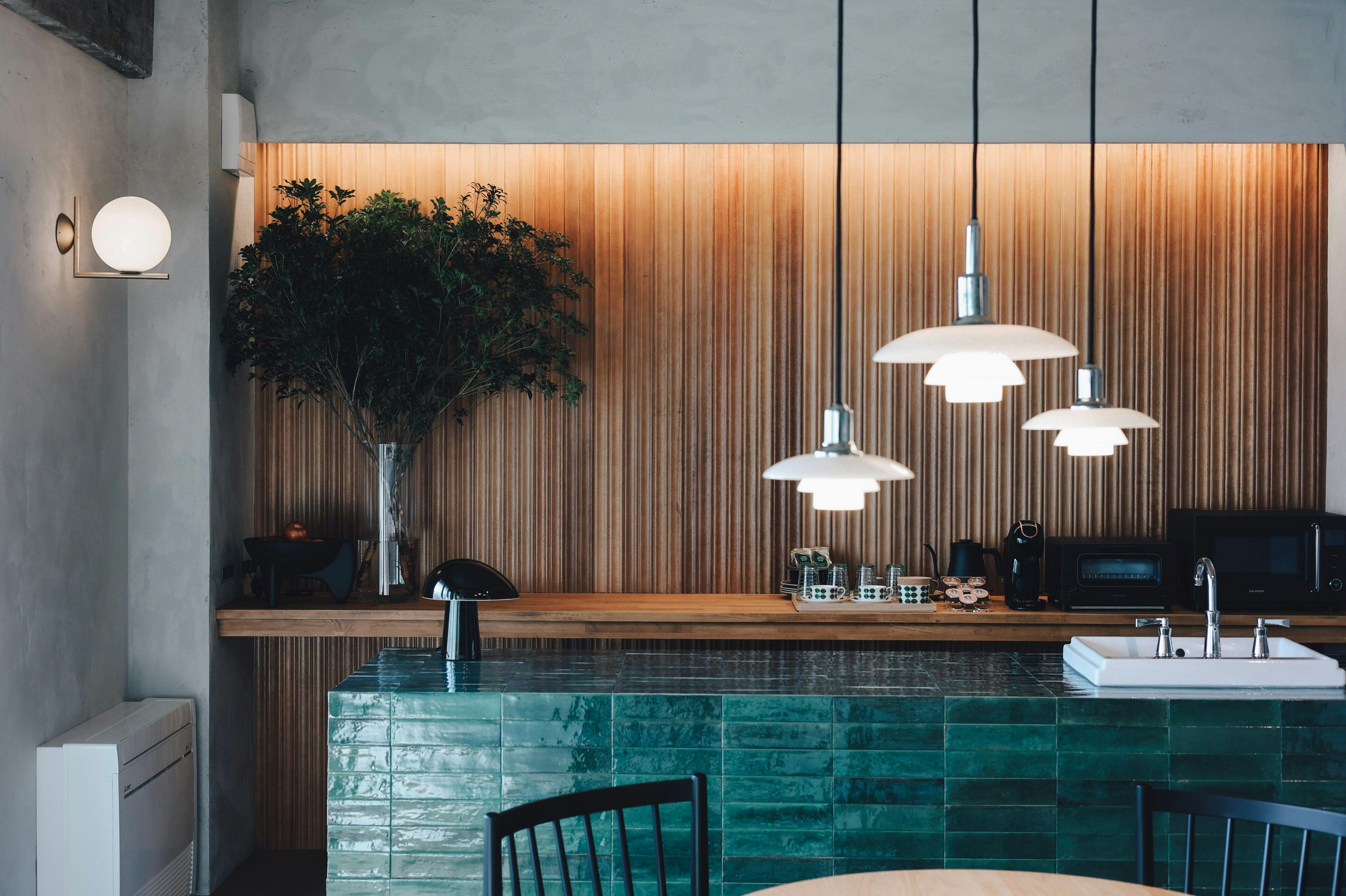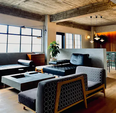 神話の国「出雲」の玄関口、JR出雲市駅からほど近く、駅前の喧騒からはちょっと離れた市街地の一角にあった製氷工場跡をリノベーションした北欧の照明やデザイナー家具が特別な空間を創る1日1組限定のHOTEL。当宿は4棟からなる複合施設「&(アンド)」VINTAGE棟の2Fになり、1Fにはレストラン「 - f u j i e - 」もあり、敷地内他の棟にはベーグル、ドーナツ、クレープの専門店やエステ、パティスリーもあり、駅前の繁華街までも徒歩圏内でゆったりした滞在を楽しめます。