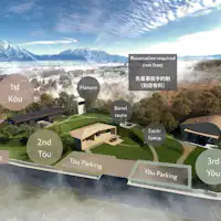 敷地は約 1,200 坪。個性ある3棟のヴィラに加え、ゲストハウス、アウトドアサウナ、焚き火スペースを配し、小さな村のような「暮らすように楽しむ」空間を実現。これにより、単なる別荘ではなく、“自然・建築・時間”を丸ごと楽しむプライベートリトリートが可能です。