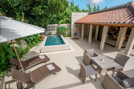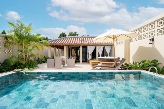 THE GARDEN Biseは、沖縄北部・備瀬の静けさに寄り添うように佇む、全2室のみのプライベートヴィラ。それぞれの客室にはプライベートプールとテラスを備え、自然と一体になるような穏やかな時間が流れます。琉球建築の趣を残しながら、インテリアは落ち着いたトーンで統一し、心が静かに整う安らぎの空間に仕上げました。 朝のやわらかな光とともにテラスでいただく一杯のコーヒーは、旅先だからこそ感じられる特別なひととき。朝食も同じくテラスでゆっくりとお愉しみいただけ、心地よい風と音が優雅な時間を演出します。 喧騒から離れ、自然と寄り添いながら心がほどける贅沢な滞在をお過ごしください。
