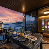 淡路島西海岸の海沿いに佇む、ドッグラン付きの貸切高級新築ヴィラ「THE LAGOON」。洗練された隠れ家のような空間で、大切な方や愛犬と特別なひとときをお過ごしいただけます。小雨でも快適なビルトインテラスでのBBQ、室内には臨場感あふれるプロジェクターを完備。ワーキングスペースやお子様のための読書スペース、海景色を望むハンモックなど、上質な寛ぎと遊び心を兼ね備えました。大人も子供も心満たされる、唯一無二のヴィラステイをご堪能ください。