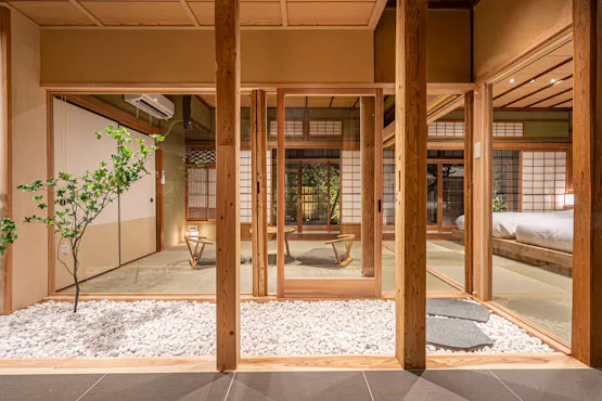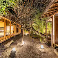 歴史と伝統が息づく築65年の古民家をリノベーションし、和の美しさと温もりに包まれた空間に生まれ変わったプライベートリゾート竹泉。お部屋やお風呂から見渡せる日本庭園には竹や梅が育ち、眺めているだけで心が休まります。熱海で人気の商店街も徒歩圏内なので、観光も宿でのリラックス時間も存分にお楽しみください。