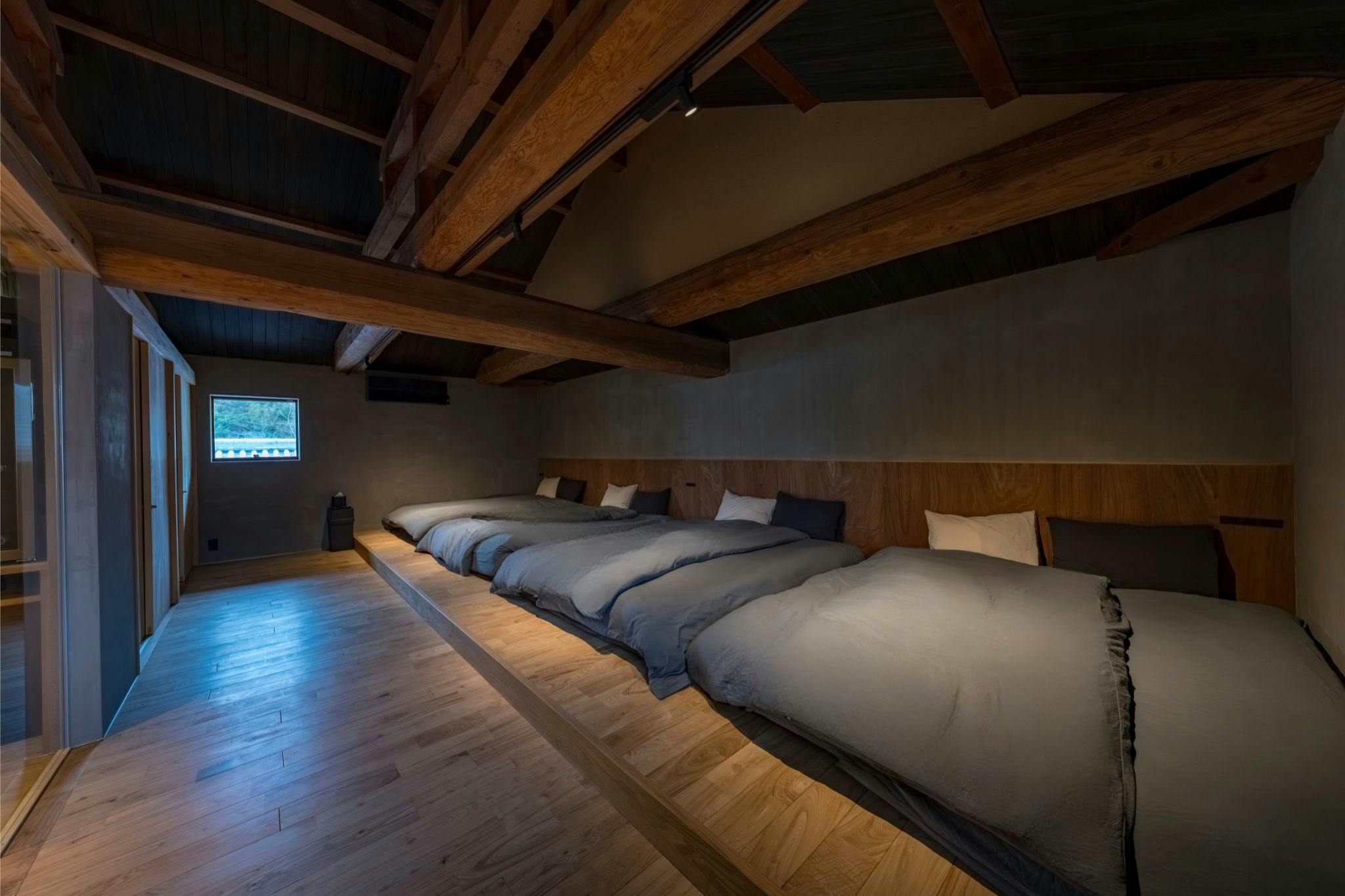 NUIは、土間に広がるアイランドキッチンと炉端スペースを備えた、最大20名様まで宿泊可能な一棟貸切の古民家宿です。 火を囲みながら料理と会話を楽しめる“特別な時間”をお過ごしいただけます。 プロジェクターやカラオケに加え、ダーツマシンも完備しており、家族旅行・合宿・企業研修・仲間同士の集まりなど、幅広い用途でご利用いただけます。