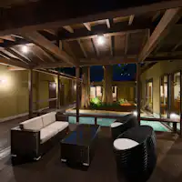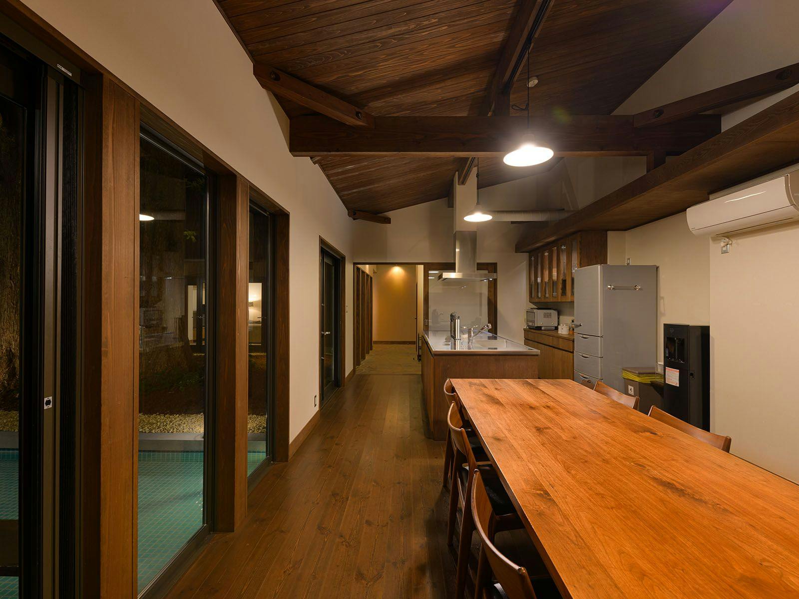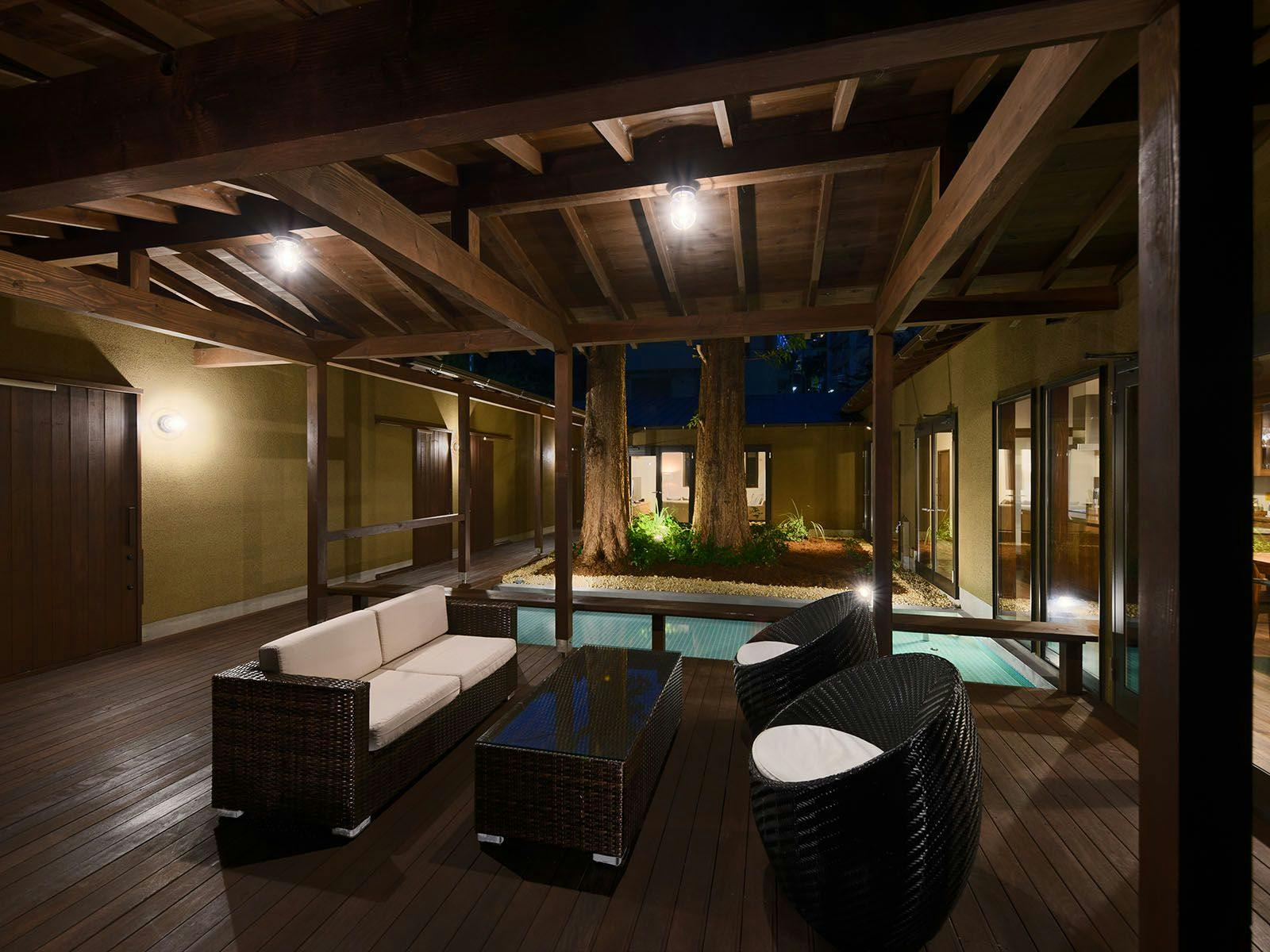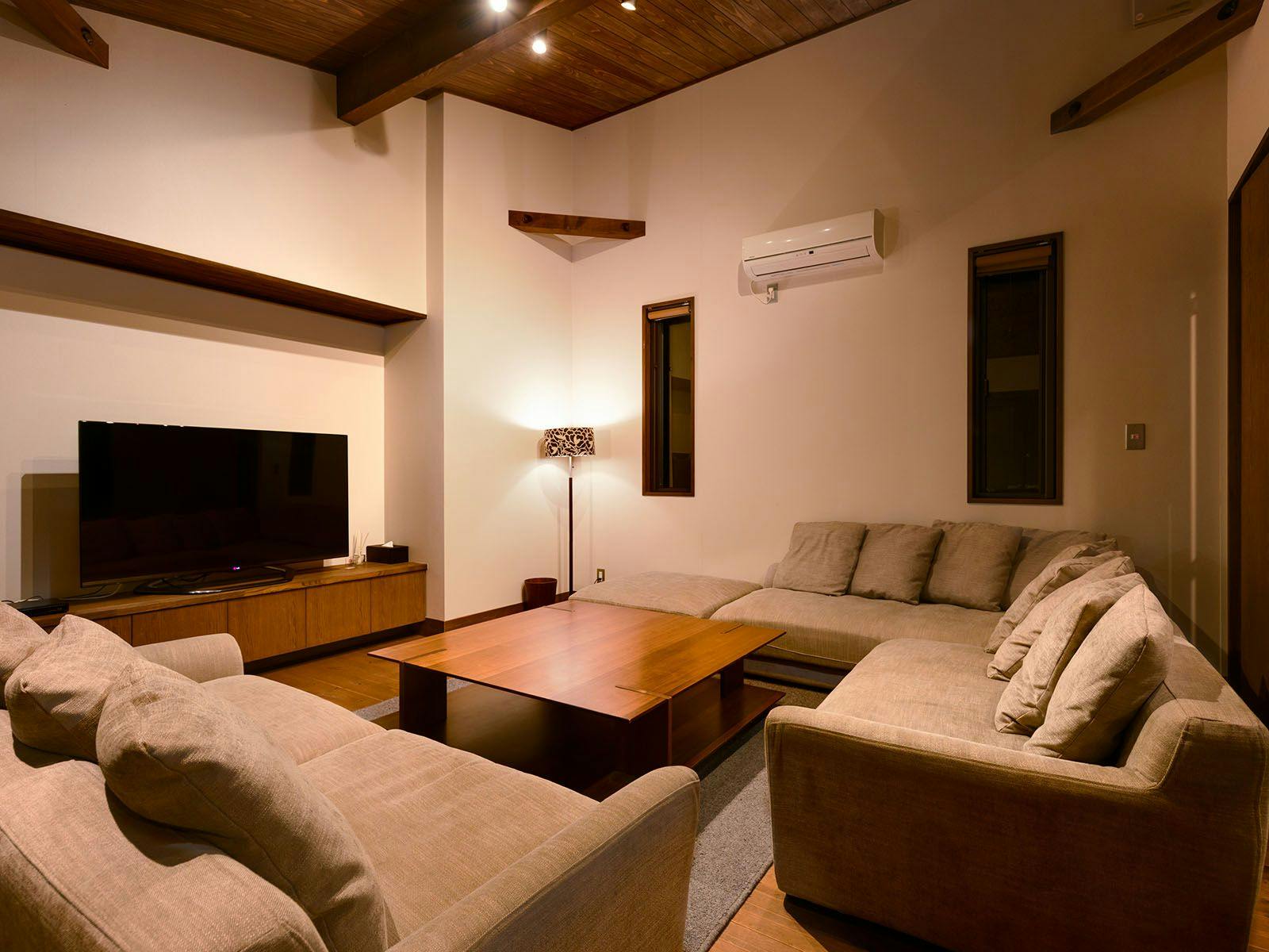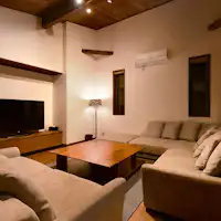 熱海駅からほど近い場所にありながら、そこには驚くほど静かな時間が流れています。 四方を平屋が囲む中庭には、二本の巨木が空へと伸び、水盤には季節の緑が鮮やかに映り込みます。 「庭とともに過ごす」をコンセプトにしたこのヴィラは、広々としたリビングとシモンズ製ベッドを備えた寝室、そして大型キッチンを完備。 大切な人と食卓を囲み、語らうひとときを優しく包み込みます。 心ゆくまで羽を伸ばせるのは、庭を一望するガーデンビューの半露天温泉。そして、100インチの大画面とマッサージチェアを備えたシアタールーム。 湯けむりの向こうに揺れる木々を眺め、ただ静かに、その瞬間に身を委ねる。ここは、何もしない贅沢を知る大人のためのヴィラです。