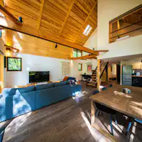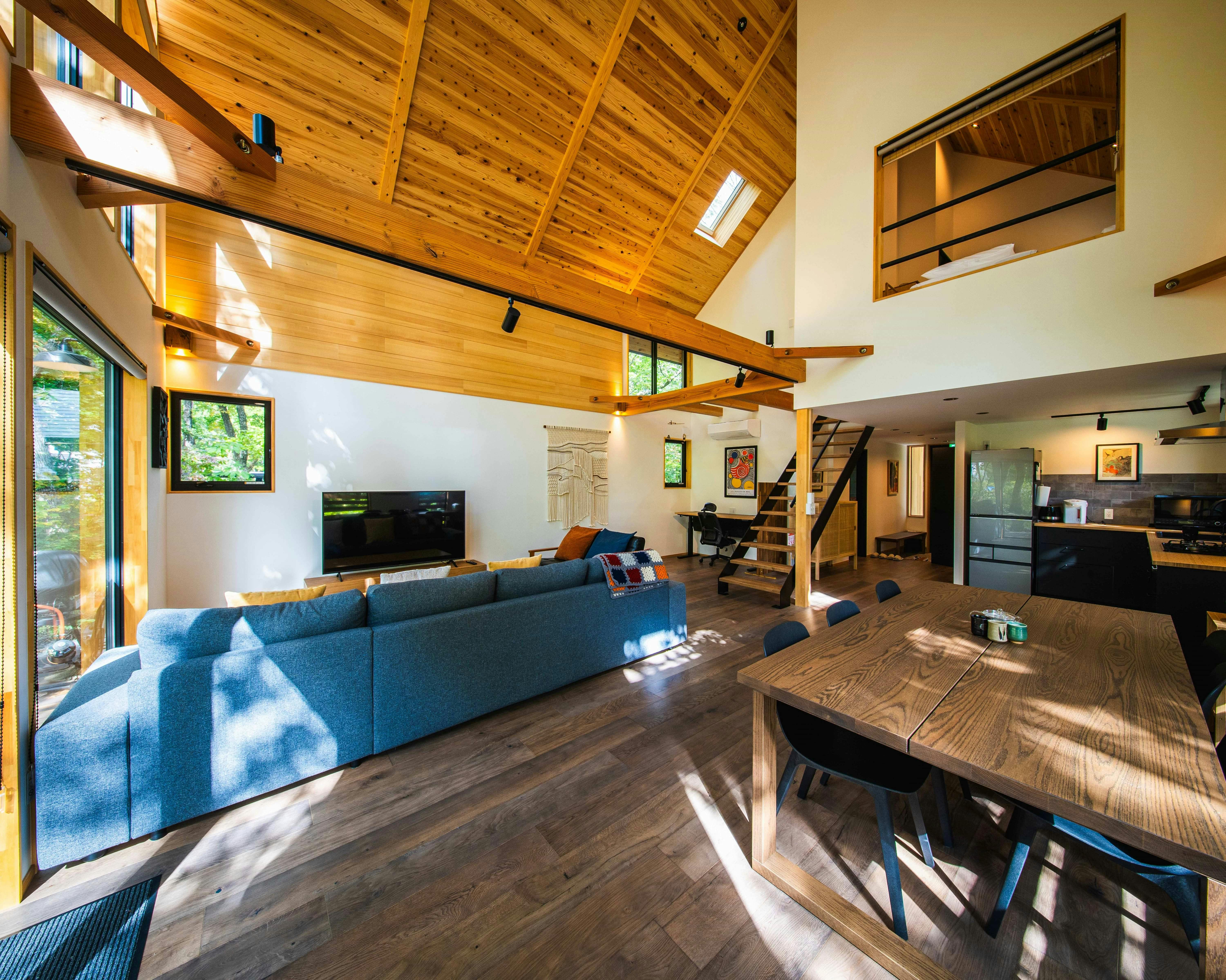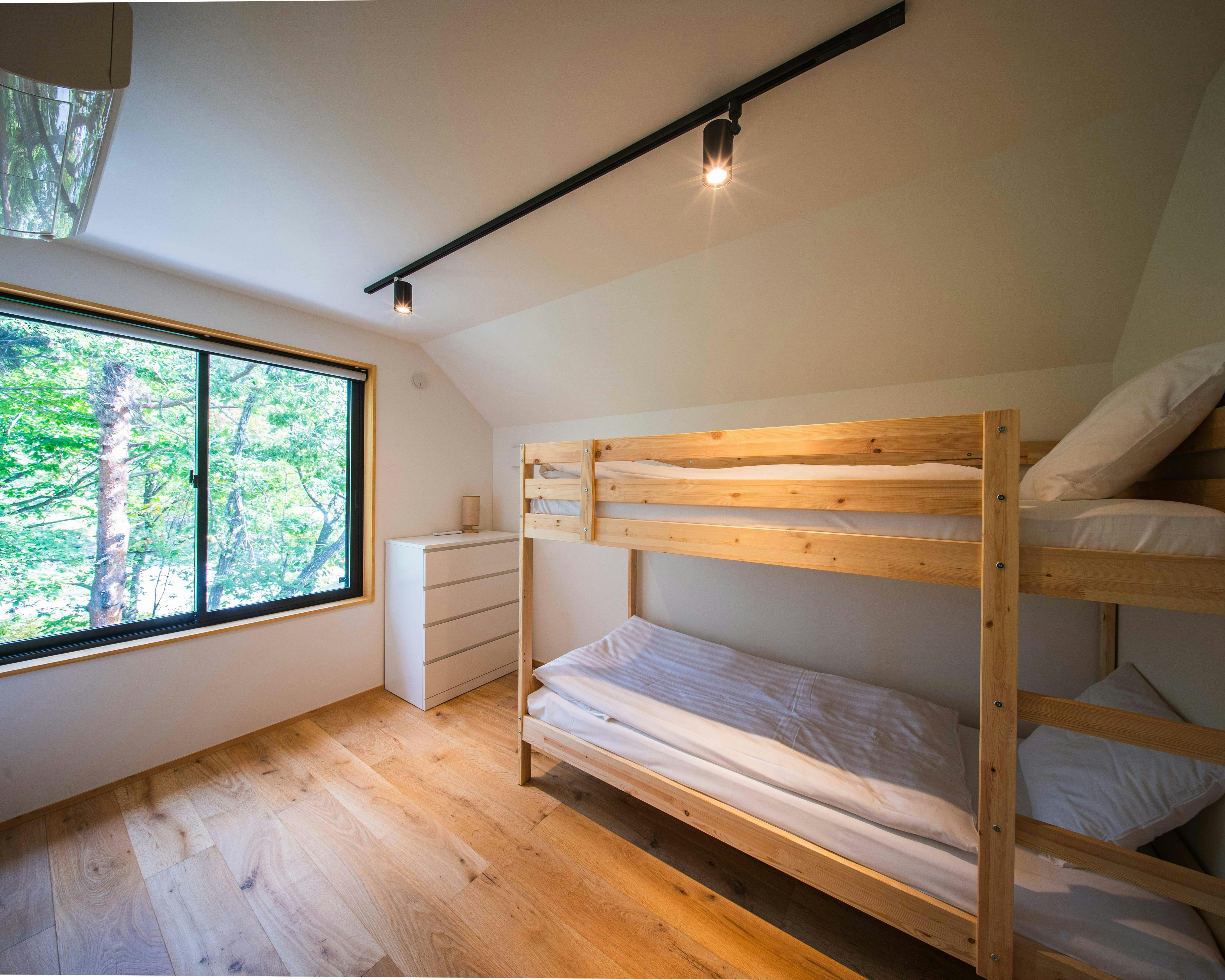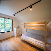 現代的な建築と自然素材が調和し、森の景色と柔らかな自然光に包まれる静かな空間を演出します。 開放感ある室内は快適さとデザイン性を兼ね備え、家族や少人数グループでの滞在に最適。 洗練された落ち着きの中で、白馬ならではの特別な時間をお楽しみいただけます。