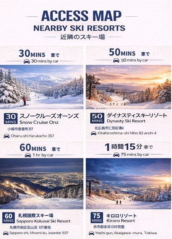 札幌駅から車約10分、北24条駅徒歩圏内かつ高速道路ICにも近い250㎡超のラグジュアリー一棟貸切邸宅。最大10名まで滞在可能で、ファミリー・グループ旅行・記念日に最適です。プライベートサウナ(ロウリュ対応)とバルコニー露天風呂で極上のととのい体験を。シアタールーム、上質な家具を揃えたリビング・ダイニング、フルキッチンを完備。全室床暖房&エアコン、無料駐車2台対応。周辺にはスーパーやコンビニが充実し、札幌テイネなど近郊スキー場へも車でスムーズにアクセス可能。都市の利便性と非日常のくつろぎを兼ね備えた、贅沢なプライベートステイです。