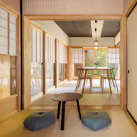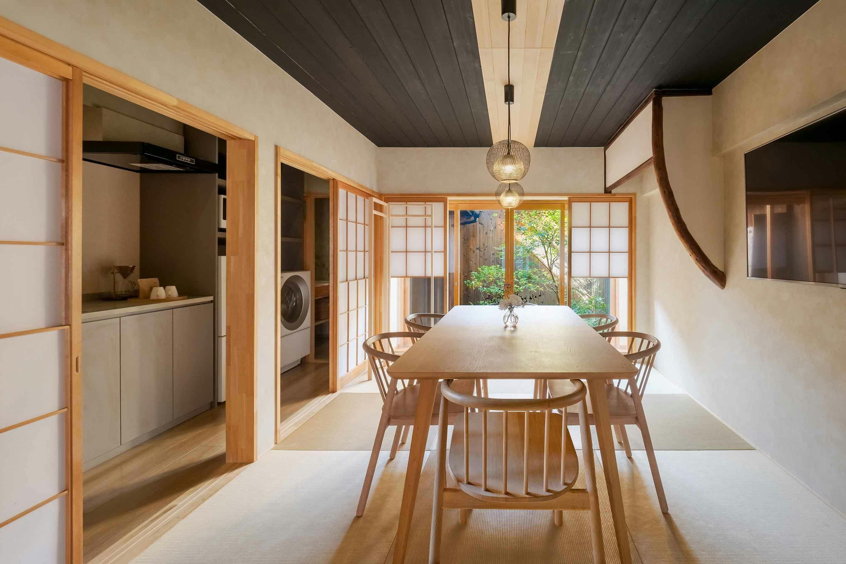 徳川家康によって築城された「二条城」まで徒歩圏内。800mものアーケード街に約180店が軒を連ねる「京都三条会商店街」すぐそばに佇む、一日一組限定の一棟貸し宿泊施設「きゆ」。築110年以上の伝統的な京町家を、紡がれてきた歴史、そして街と文化を結ぶ“葵”の縁に包まれた和やかな空間へとリノベーションした完全プライベートな町家(町屋)宿です。 坪庭に面したダイニング、木の温もりあふれる高野槙の浴室、お料理のできるキッチン、チェアスペースのある開放的な洋室、和室を備え、最大6名様までゆったりと快適にお過ごしいただけます。 古都の歴史と街で育まれた文化の息づかいを感じながら、心和やかに過ごせる町家宿「きゆ」で、ワンランク上のご滞在を。