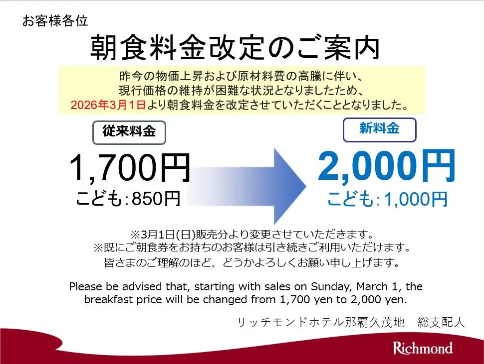 平素よりリッチモンドホテル那覇久茂地をご利用いただき、