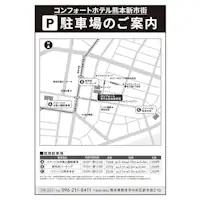 ・料金: 宿泊者一泊あたり 1,500円 ・駐車場スペース: 車長 --- 車幅 --- 車高 2.1m ・バレーサービス: なし 敷地内駐車場 無し 提携駐車場 ■新市街パーキング 1泊(15:00~翌11:00)1,500円 高さ制限2.1m 途中出庫の際は別途料金発生 ■パスート24辛島公園 1泊(14:00~翌12:00)1,200円 高さ制限2.3m 途中出庫可能(追加料金なし) ■パスート24熊本中央 1泊(14:00~翌朝12:00)1,200円 高さ制限2.1m 途中出庫可能(追加料金なし)