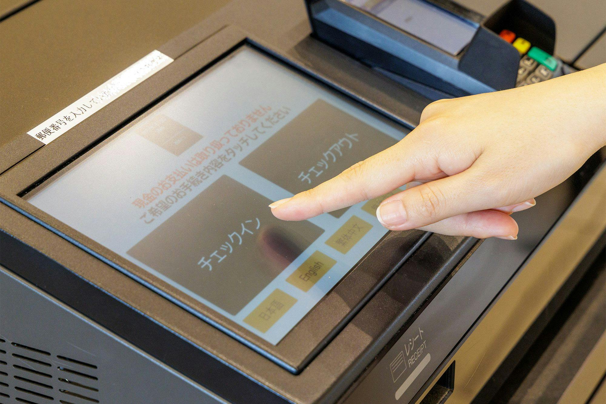 自動チェックイン機を2台ご用意しております。 簡単タッチパネルでスピーディーにいつでもチェックイン・チェックアウトが可能です。 有人フロントもあり、何かお困りの際も安心です。その他設備も充実しております。 ※自動チェックイン機はキャッシュレス決済・事前決済のみ対応
