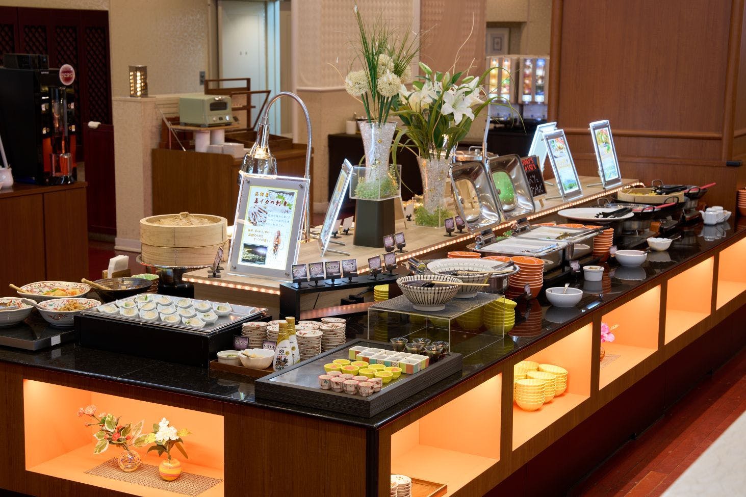 函館ソウルフードや郷土料理、和洋中バイキングメニューやデザート・ドリンクなど充実ラインナップ。 人気の和洋中バイキングメニューはもちろん、豚汁やザンギといった北海道グルメや郷土の味も充実しております。バラエティ豊かなメニューからお気に入りを選ぶことができるビュッフェスタイルで素敵な1日のはじまりをお楽しみください。 ※仕入れ状況や季節により内容が異なる場合がございます。 ※レストランのご利用はご宿泊のお客様のみとさせて頂いております。