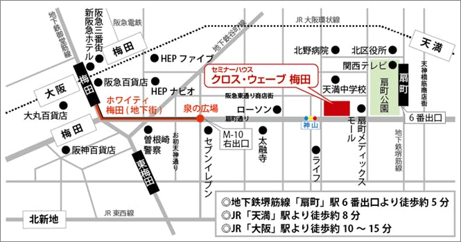 ・地下鉄大阪メトロ 御堂筋線「梅田」駅南口改札から徒歩約10分