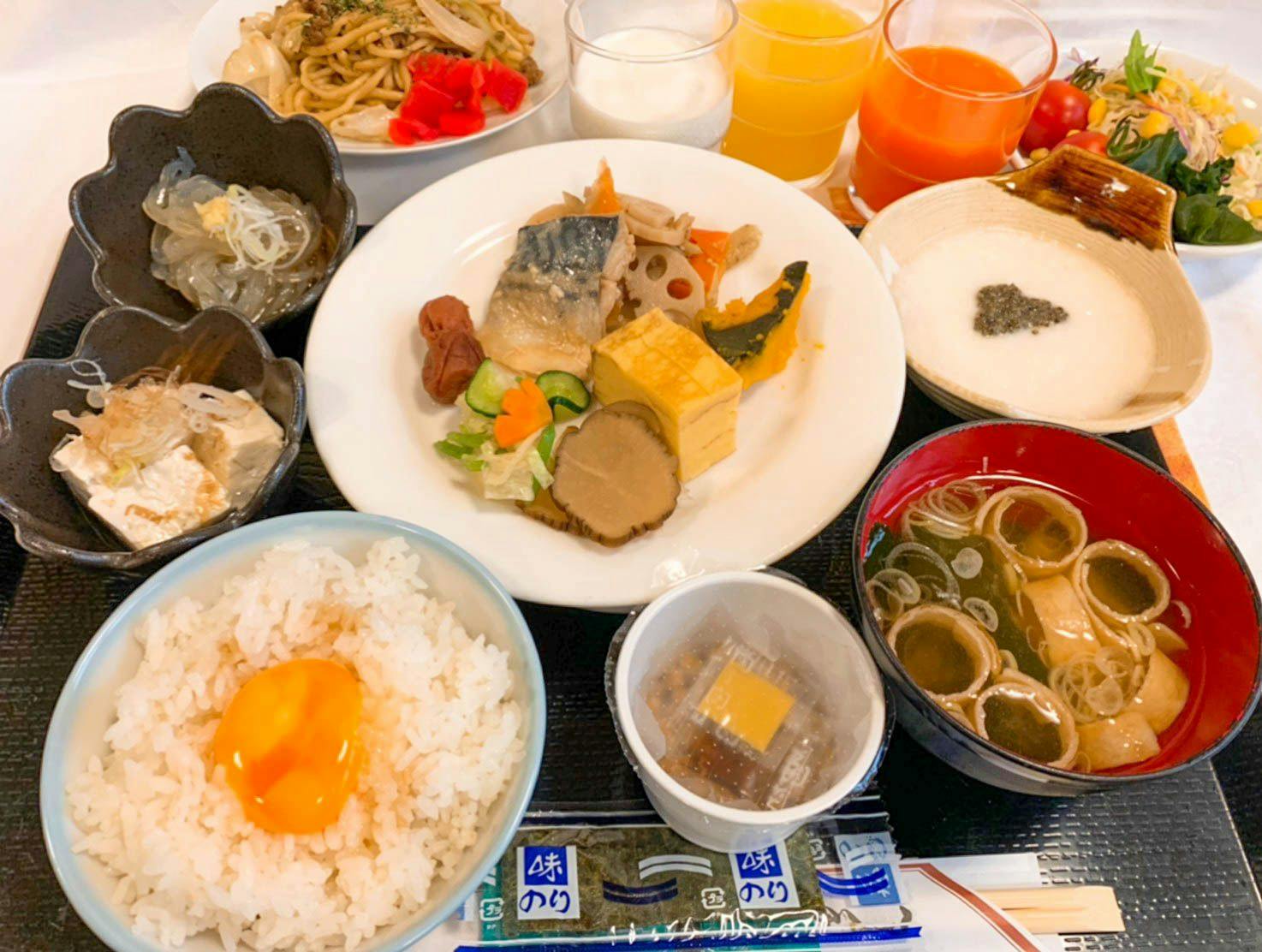 | 朝食 | 1Fぐぅぐぅ亭にてバイキング 料金:お一人様 1,650円 営業時間:6:30~9:00 ※ご朝食券は、ホテルフロントにてお買い求めいただけます。 |
