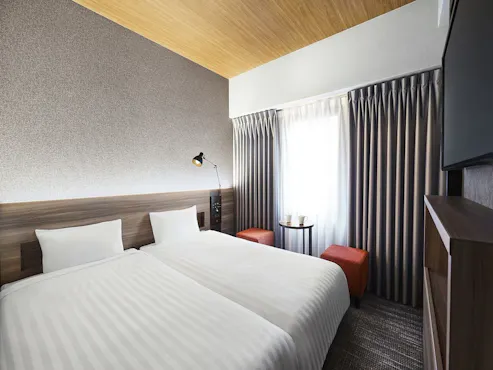 木目を随所に活かしたスタイリッシュで心地よい客室は、全米売上No.1のサータ社製のベッドを導入し、心身ともにリラックスできる空間に。 機能的なお部屋で快適にお過ごしいただけます。 ■客室のご案内 ・全室禁煙 ・Wi-Fi完備(無料) ・枕元にコンセントを設置 ・サータ社製マットレス ・空気を含み柔らかい浴び心地のエアインタイプのシャワーヘッド ・43インチテレビ