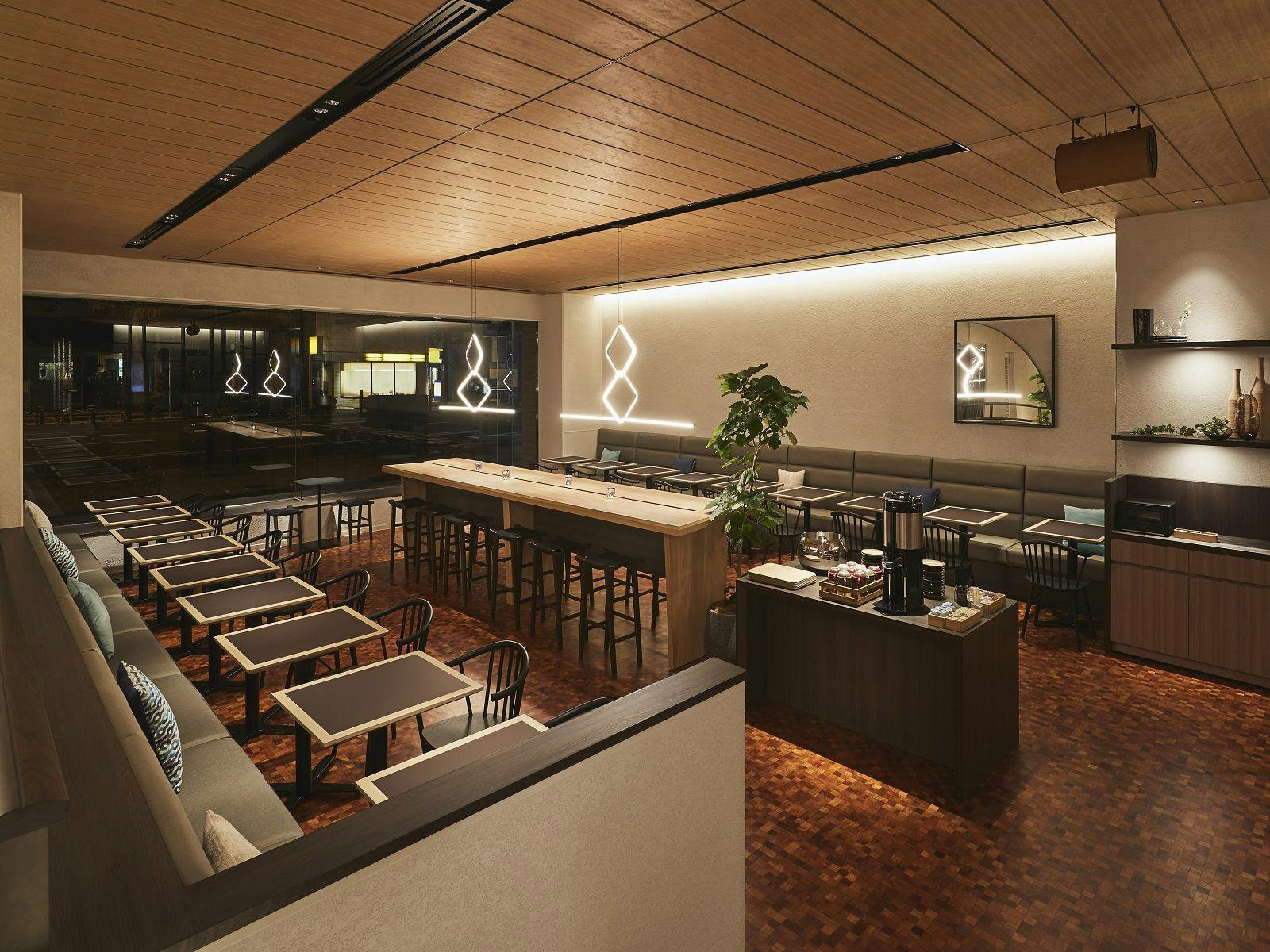 朝食・ランチは1階カフェテラスでご用意。 店内を彩る照明やインテリアアイテムは、カッシーナ・イクスシーと共同でセレクトした世界中から愛されるインテリアブランドのコレクションを散りばめたスタイリッシュな空間。 お食事だけでなく、ビッグテーブルでのお仕事、ソファ席での楽しい会話などさまざまなシーンでご利用いただけます。