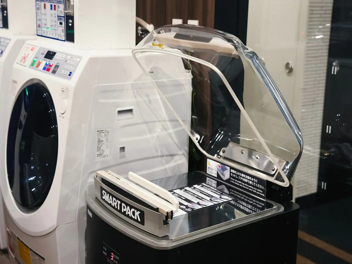 袋に圧縮したい物品を収納し、機械にお金を投入ください。