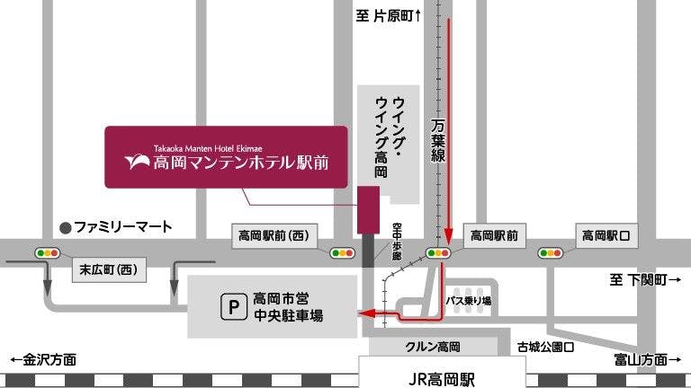 【新幹線で】 ・新高岡駅より路線バスで約8分→高岡駅南口で下車後徒歩で約3分 【在来線で】 ・高岡駅古城公園口(北口)より徒歩1分(直通連絡通路あり) 【飛行機で】 富山空港-富山駅 直通バス 約20分 富山駅-高岡駅 約17分 【お車で】 北陸道 ・・ 小杉ICより車で約15分 能越道 ・・ 高岡ICより車で約10分