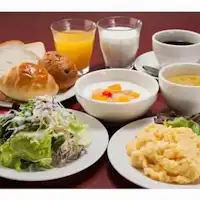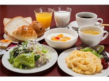 和洋食ブッフェ形式の朝食を ホテル2階ラウンジにてご用意しております。 【メニュー内容】一部日替わり ・パン(バターロール・レーズンロール・食パン) ・ご飯 ・ビーフカレー ・生野菜・スクランブルエッグ ・みそ汁 ・コンソメスープ ・ホットコーヒー ・紅茶 ・果汁100%オレンジジュース ・和洋食のビュッフェをお召し上がりくださいませ。 営業時間:6:30~9:30