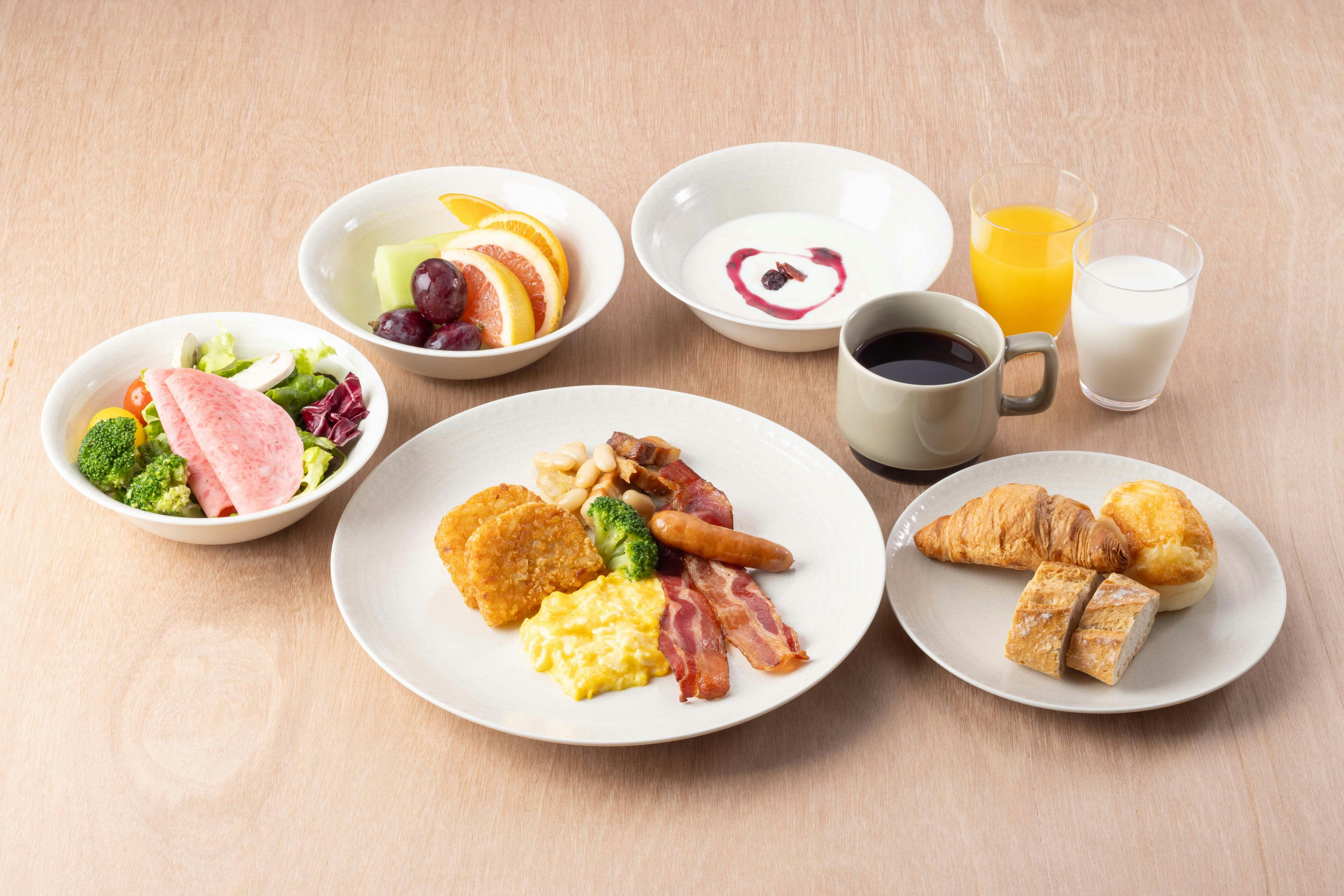 ホテル1階 ROYAL Mirai Dining【ロイヤル未来ダイニング】 ◆朝食は和洋折衷のビュッフェスタイルでご用意しております。 【料金】大人2,500円 小学生1,250円 幼児無料 ランチ営業時間:11:00~18:00(L.O.17:00)