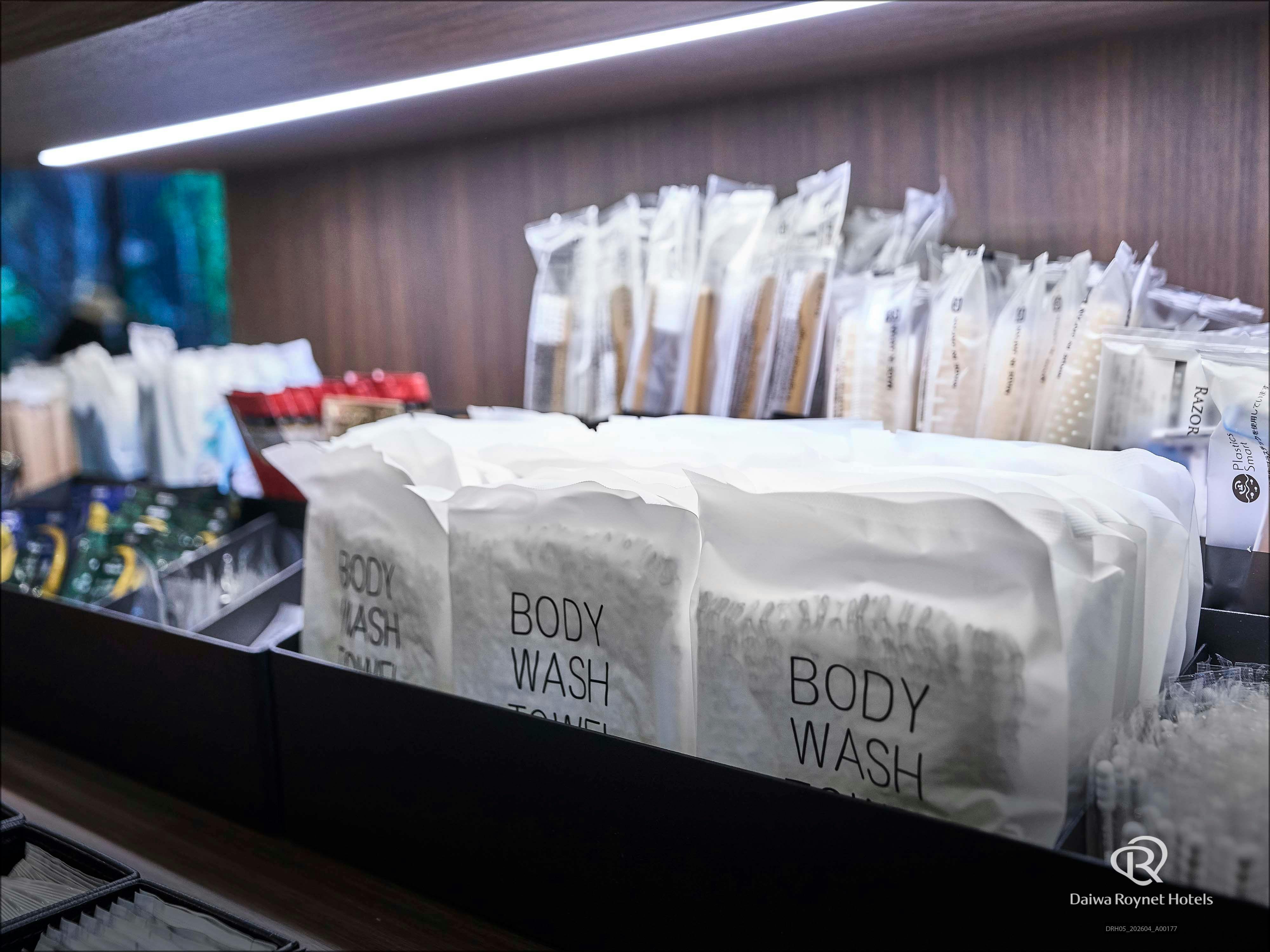 基本のバスアメニティはもちろん、基礎化粧品をはじめ、ヘアオイルやシェービングクリーム等ラインナップも充実。男性・女性問わず急なご宿泊の際にも役立つアイテムを取り揃えております。 お子様アメニティはフロントにてご用意しておりますので、お気軽にお申し出ください。