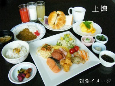 | 朝食 | レストラン土煌にて、バイキングスタイルの朝食をご用意いたします。 ・営業時間 5:45~9:30(最終入店9:00) ・料金 お1人様 1,300円 |
