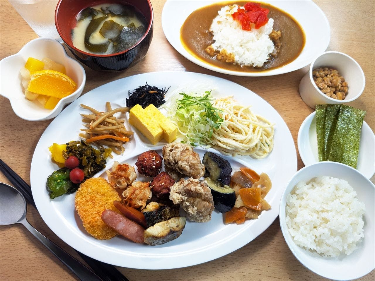 | その他 | *必要なアメニティをご自由にお部屋へお持ちいただけます。 ■アメニティーバー(フロントにてご準備) ・歯磨きセット・カミソリ・綿棒・ヘアブラシ ・ドリップコーヒー・緑茶・紅茶・梅こぶ茶 ■各階客室フロア貸出棚 ・ガウン・浴衣 ・低反発枕・クッション枕・加湿器・空気清浄機・ズボンプレッサー(数量限定) |