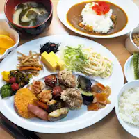 | 朝食 | 和・洋バイキング(ドリンクバー付)1,300円 ■ 時 間 ■ 6:30a.m.~9:00a.m.(オーダーストップ 8:30a.m.) ■ 場 所 ■ 1階ラウンジ |