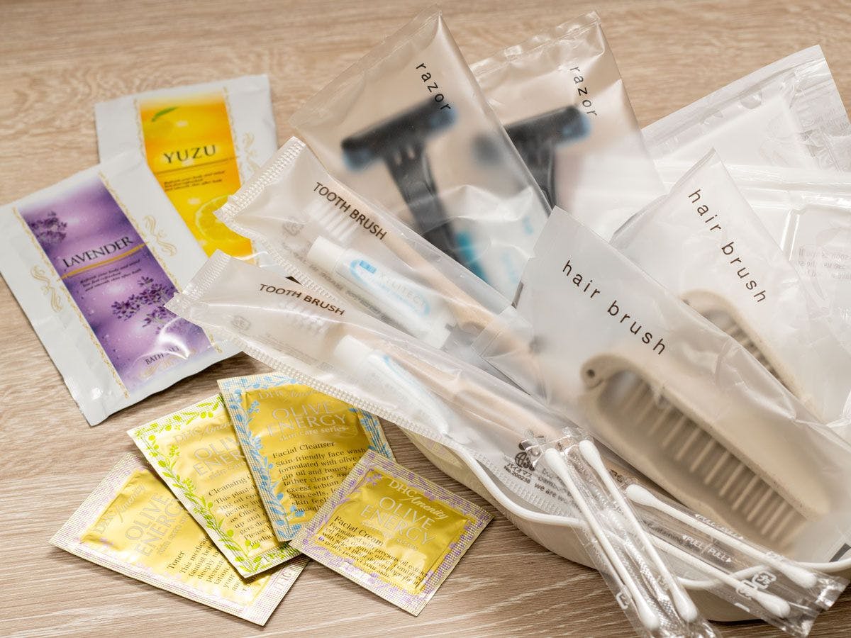 ホテル1Fにアメニティステーションがございます。お好きなものをお持ちください。