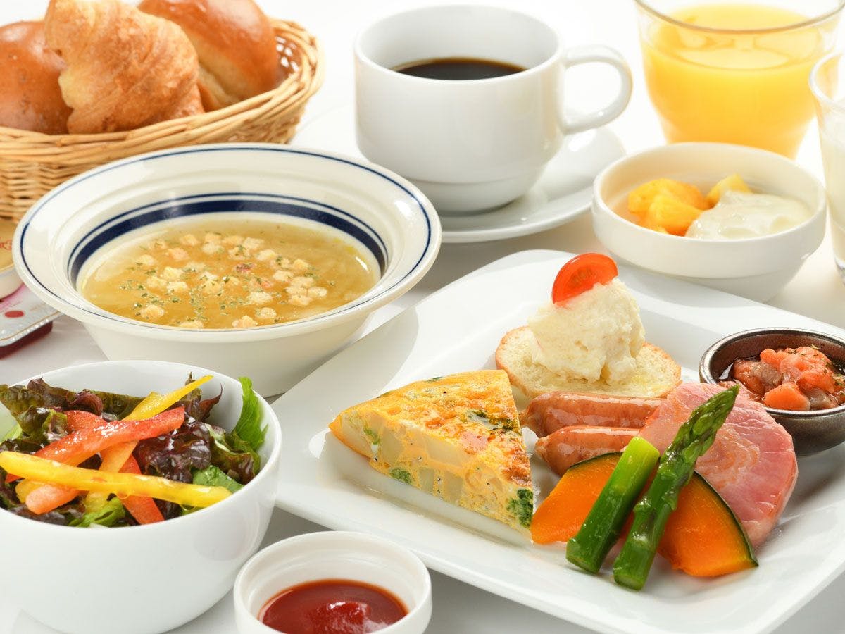 | 朝食 | 1階レストランでは和定食か洋定食をお選びいただけます。営業時間 6:30~10:00(ラストオーダー9:30) |
