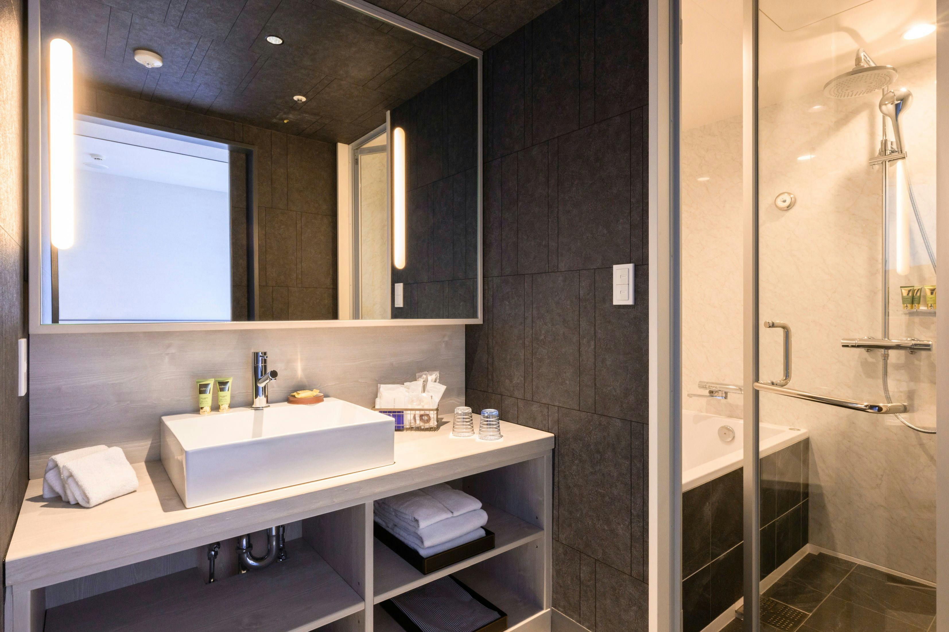 uni* 2025/7/12ラブホ街どころかラブホの間を進んでようやくあるという立地を差し引けばとても良いホテルでした。ベッドや水回りなどは清潔ですが、窓ガラスや電球など必須ではないところが確かに汚い、というか掃除されていないと思いました。また掃除しましたの紙がぐちゃぐちゃになっており、逆効果だと思いました。国際色豊かで海外旅行に行った気分になれます。特に騒がしい方はいませんでした。ルーフトップバーの営業時間は長くて素晴らしく、景色も綺麗でしたがあまりにオペレーションが回っていませんでした。特に混雑していたわけでもなかったので、急に欠員が生じたのでしょうか?会計にもやけに人が溜まっており、人が「人がいなければ押してください」というボタンもどこにあるか見当たらず・・・大手ビジネスホテルチェーンと比較するとシティホテル感が味わえました。デメリットとしてはカーテンがシェードカーテンなので朝早くから目が覚めてしまったこと、6時台から近隣の工事の音が響いてうるさかったことです。どうしようもないですが。