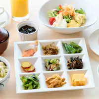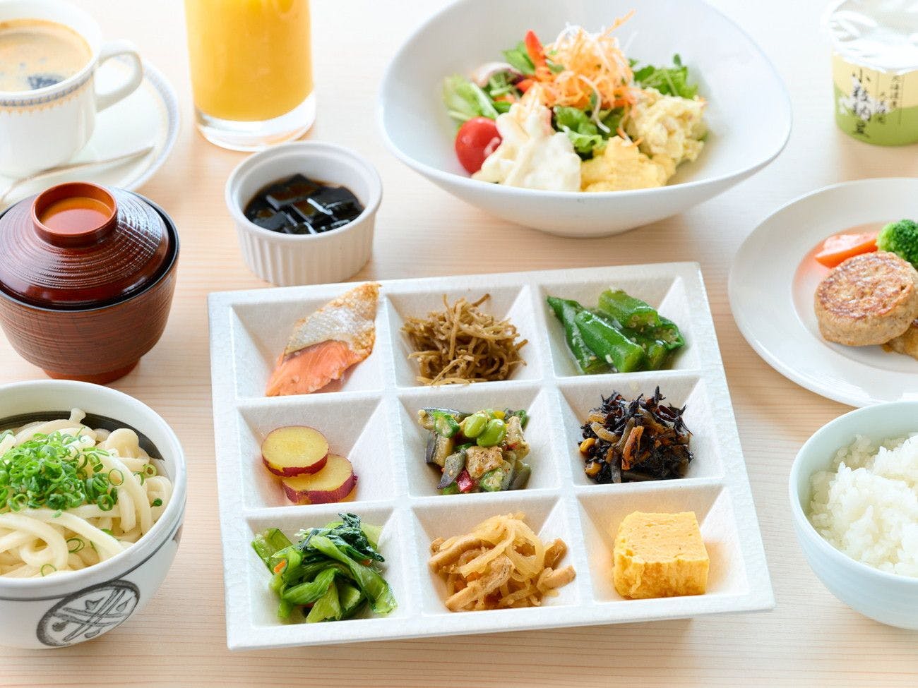 | 朝食 | レストラン ごまいち 内容 和洋ビュッフェ 営業時間 7:00 ~ 10:00(最終入店9:30) 料金 大人 前売り:2,400円(税込) 当日:2,600円(税込) |