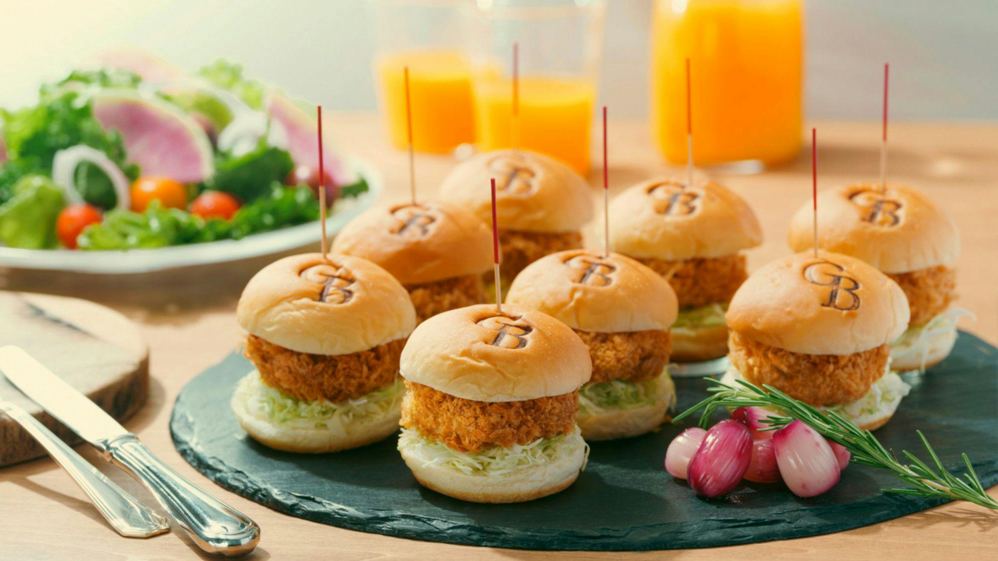 栄養バランスにこだわった“朝活”ウェルネス・ブレックファスト。開発にあたっては、抗加齢医学の専門家の青木 晃医師の監修を得て考案。ベジタリアン、ヴィーガンの方にも安心いただけるメニューに加え、とんかつ新宿さぼてんとコラボした一枚一枚丁寧に揚げる“ひとくちヒレかつ”を挟んだミニバーガーを提供しております。 ご利用時間 7:00 – 10:00 (L.O.9:30)