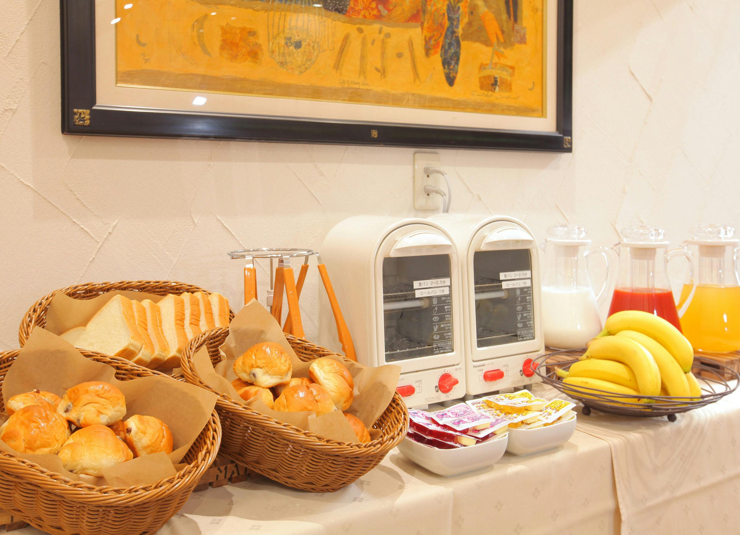 | 朝食 | <嬉しい無料朝食サービス> パン・コーヒー・スープ等のご朝食(軽食)をブッフェスタイルでご用意しております。 ○場所/5階朝食サロン ○時間/6:30~9:00 (L.O.8:30) ※ドリンクサービスは24時間いつでもご利用になれます。 |