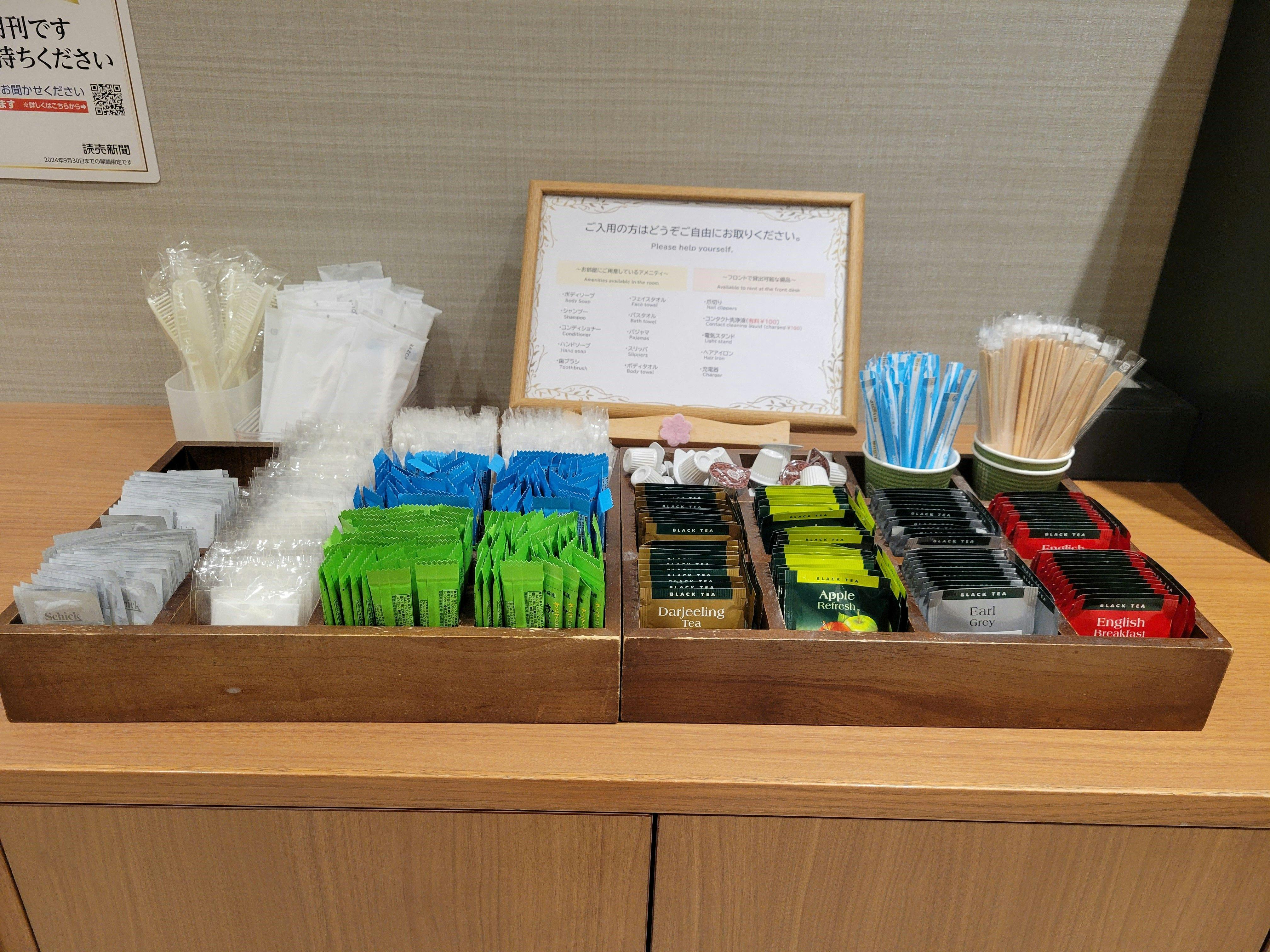ホテル3階エレベーター前にてウェルカムコーヒーをご用意しております。 コーヒーマシンによるコーヒー・4種類の紅茶のパックや日本茶などのご用意もございます。 たくさんのお客様にご好評いただいております! ごゆっくりお過ごしくださいませ。