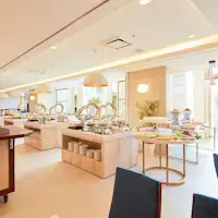ご朝食は2階【パームツリー】にてブッフェ形式でお召し上がりいただけます。 ○時間/ 7:00~9:00(土日祝は~10:00) ○料金/大人1,760円、小学生1,320円、幼児660円(未就学児) ※3歳以下のお子様は、無料でご利用いただけます