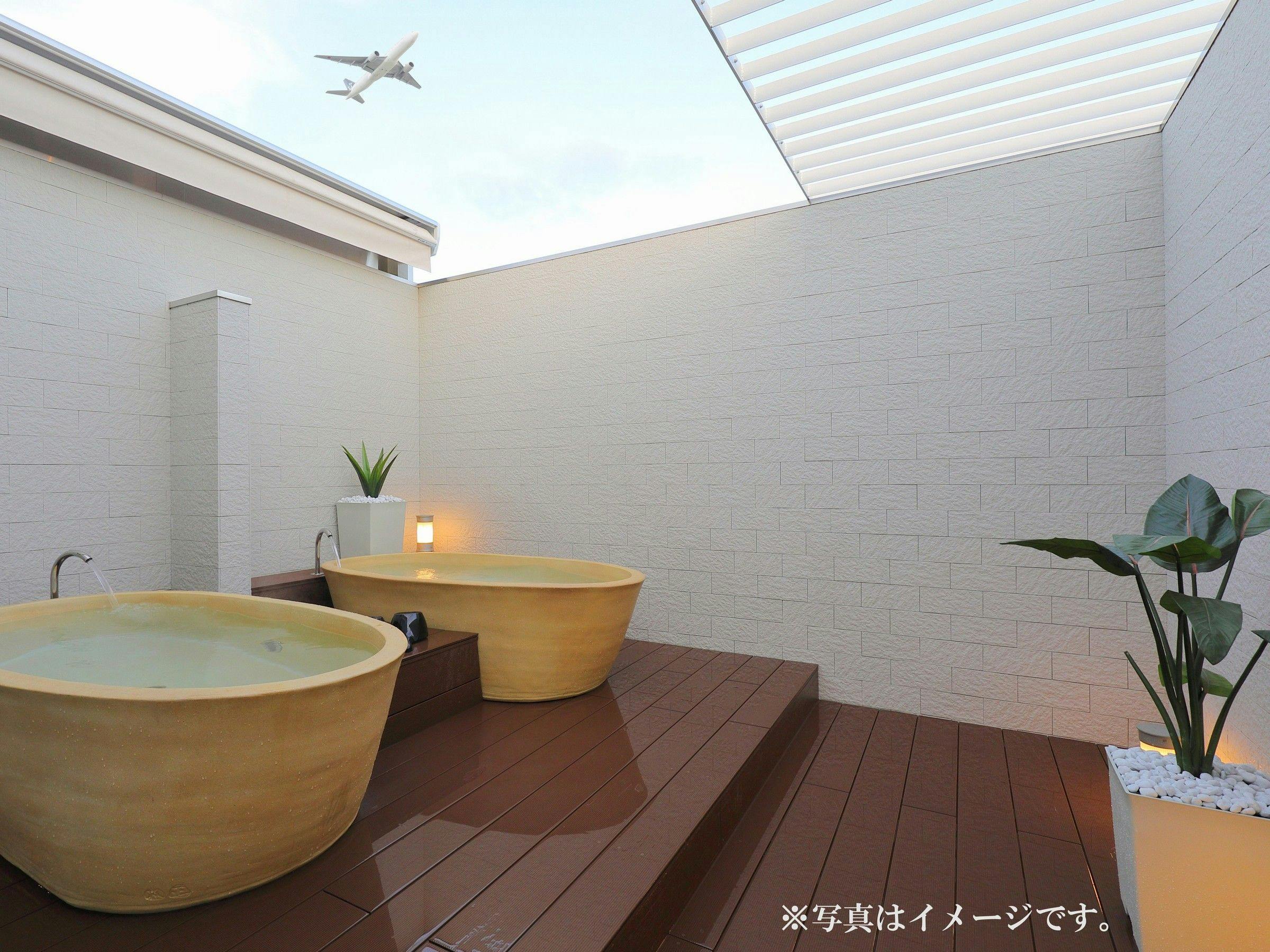 開放感が溢れており日常を忘れさせるような空間を演出。 空を見上げれば夜空の星と飛行機の往来が楽しめます。 壺湯の数 [男性]2[女性]2