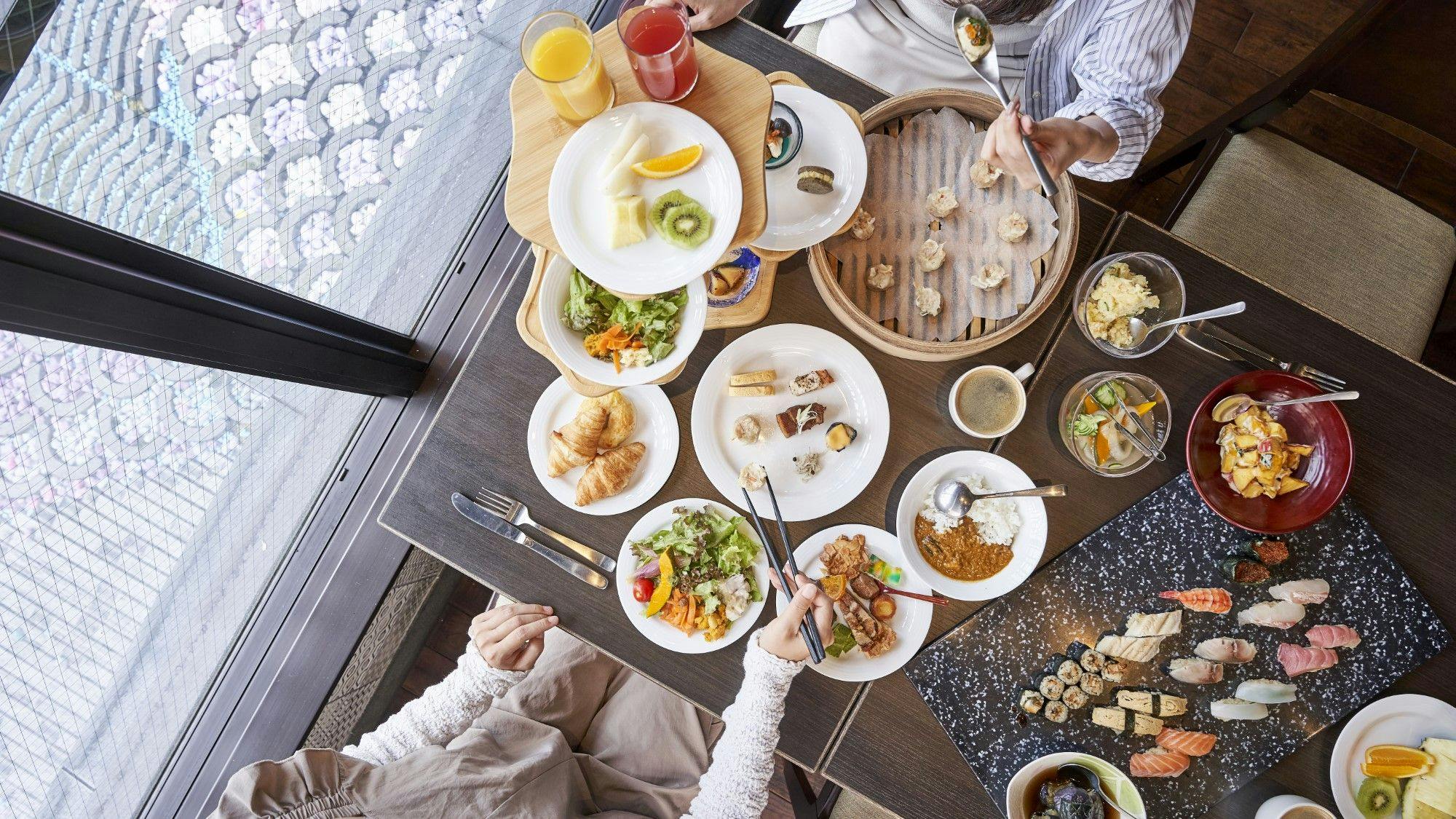 | 朝食 | 料理長厳選の京都らしさを感じて頂ける種類豊富な和のメニューに加え、洋食のメニューもご用意しております。 洋食/和食のバイキングスタイル 1階レストラン 営業時間 7:00~10:00 和洋食ビュッフェ 大人お一人 2,800円 お子様お一人(7歳~12歳) 1,200円 お子様お一人(4歳~6歳) 950円 お子様3歳以下 無料 |