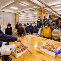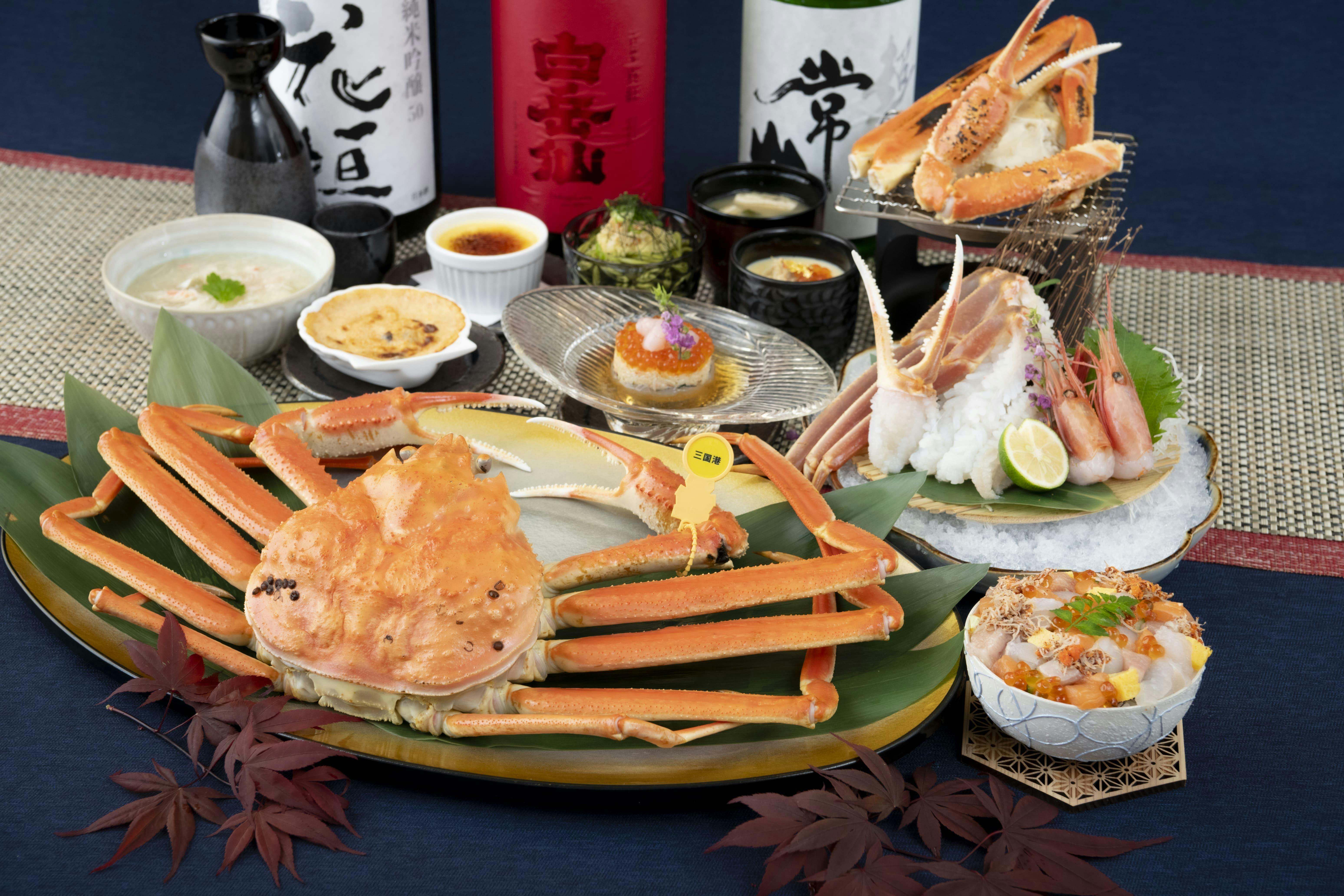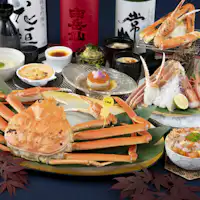 福井県の冬の味覚「越前がに」を使用した、さまざまな料理を提供しております。 まるまる1 匹を当店内で茹で上げる「釜揚げ」。 甘味がたまらない「蟹刺し」。旨味広がる「蟹しゃぶ・蟹雑炊」。 どの料理も素材だけでなく、味わいや盛り付けなど、お客様にご満足いただけるよう日々追求しながら励んでおります。越前がに料理はディナーコース料理や宿泊プランでお楽しみいただけます。