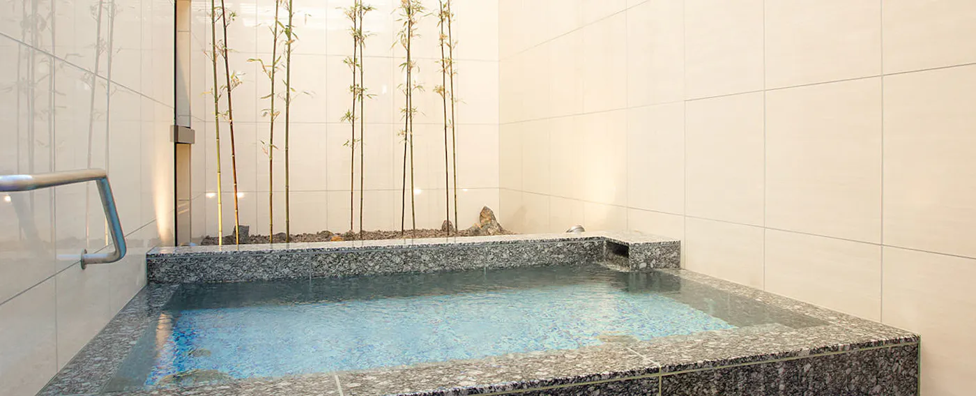 日々の疲れを癒す露天風呂と、男女別浴場(各定員3名)を完備。仕事や旅、1日の疲れをゆっくり癒す優雅なバスタイムをお過ごしいただけます。 ■ご利用時間 17:00~23:00 / 5:00~9:00
