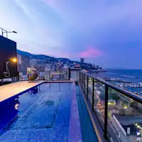 現在も昭和レトロを残しつつ、ライトアップが幻想的なムーンライトビーチなど、南国リゾートと融合した温泉街熱海。 ご宿泊のお客様はプールと展望露天風呂がついた大浴場が無料でご利用頂けます。 ホテル真正面で打ちあがる海上花火を見るには最高のロケーションです。 部屋は開放感溢れる全室露天風呂付き!
