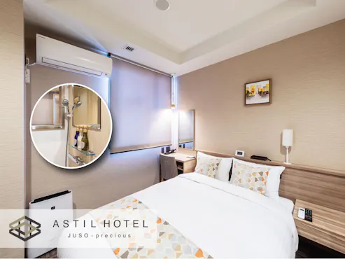 アスティルホテル十三プレシャスでは、今般の新型コロナウイルスによる感染症への対策として、 お客さまならびに従業員の健康と安全を第一に考え、またお客さまに安心してご利用いただけますよう、 以下の対策を行っております。 【パブリックスペースでの取り組み】 ・機器の設置 各階には Panasonic社製ジアイーノ(次亜塩素酸・空間除菌脱臭機)を、24時間稼働をしております。 また全客室には、SHARP プラズマクラスター(加湿機能付き空気清浄機)を完備しております。 ・アルコール消毒液の増設 各フロアにおけるロビーやレストランに消毒液を増設し、お客さまがよりご利用頂きやすい環境整備に努めております。 ・定期消毒の強化 タブレット、デスクペン、エレベーターのボタン、精算機など、お客さまの触れる機会が多い箇所の アルコール消毒を適宜実施しております。 ・接客時のマスク着用 お客さまの健康と安全ならびに公衆衛生を考慮し、接客スタッフはマスクを着用しております。 ・飛沫防止シートの導入 フロントでは、飛沫による感染拡大防止のため、ビニールによる間仕切りを設置しております。 ・チェックイン時の受付窓口 ソーシャルディスタンスの確保の為、受付窓口を3ヶ所から2ヶ所へ変更致しました。 またお客様同士の間隔を、1m以上開けていただいております。 【従業員に対する取り組み】 ・出退勤時のマスク着用 当ホテル従業員へマスクを配布し、出退勤時の着用を義務付けております。 ・出勤時の体調チェック 従業員通用口にサーモグラフィを設置し、体温の確認を徹底しております。 また 37.5度以上の発熱や、体調が優れない従業員は、病状回復後2日間が経過するまで大事を取って自宅待機としております。 ・体調不良者の管理体制の整備 体調不良時の行動基準と、従業員の健康状態を管理する仕組みを導入しております。 ・不要不急の外出・会合出席の自粛 従業員の不要不急の出張を禁止するとともに、海外渡航の禁止、不特定多数が集まる集会、 イベントや職場単位での会食・会合への出席などを自粛するよう指導しております。 【お客さまへのお願い】 ・お客さまに当施設を安心してご利用頂けるよう、ご来館時のアルコール消毒へのご協力をお願いします。 エントランスにて常設しておりますので、ご来館時にご利用ください。 ・発熱されているお客さま、また、体調の優れないお客さまは、大変申し訳ございませんが、 ご来館をご遠慮頂きますようお願い申し上げます。 ・体調が優れないと感じられた場合は、お近くのスタッフまでその旨お申し出くださいませ。 ※なお、上記については今後、日本政府ならびに関係機関の示す方針に準じ、更新する可能性がございます。 お客様に安心してご滞在いただけるよう、館内の衛生管理と従業員の健康管理を徹底いたします。 皆様にはご不便・ご迷惑をおかけいたしますが、ご理解賜りますようお願い申し上げます。