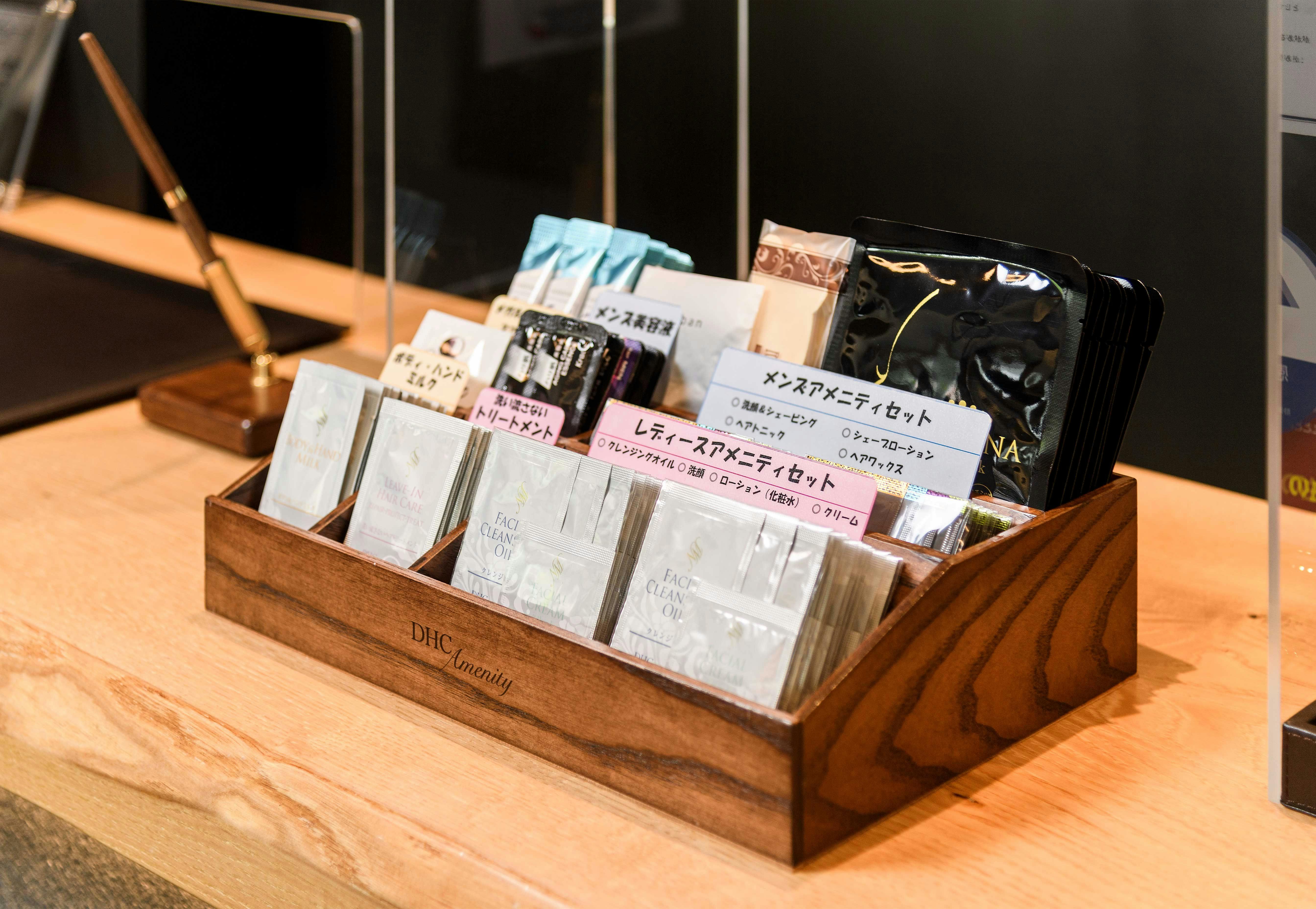 以下のアメニティをご用意しております。 シャンプー・リンス・ボディソープ・石鹸・タオル・バスタオル・ボディタオル・スポンジ・ハミガキセット・くし・ブラシ・シャワーキャップ・ドライヤー・髭剃り・ナイトウェア・スリッパ・洗顔料・化粧水・乳液・メイク落とし・綿棒・コットン・衣類の消臭スプレー・冷蔵庫・湯沸しポット・お茶セット(無料)・テレビ・金庫・体重計・ズボンプレッサー