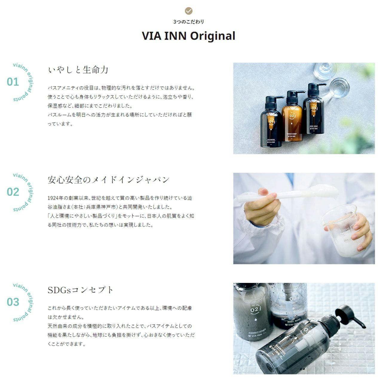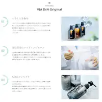 ●心地よい睡眠 品質の良いフランスベッドブランドのマットレスや、寝心地を追求したヴィアインオリジナル枕をご用意しております。 お客様の快適な睡眠をサポート致します。 ●快適なデスク回り ゆとりのあるデスクに卓上コンセントやWi-Fi環境を完備しています。ビジネスでのご利用にも最適な、シンプルで機能性の高いデスク環境をご提供します。 ※お部屋のタイプにより異なります。 ●便利な設備・備品類 加湿空気清浄機に消臭スプレー、使い捨てスリッパ、枕元のコンセントなどを全室に標準装備しています。 かゆいところに手が届く使い勝手のいい部屋です。