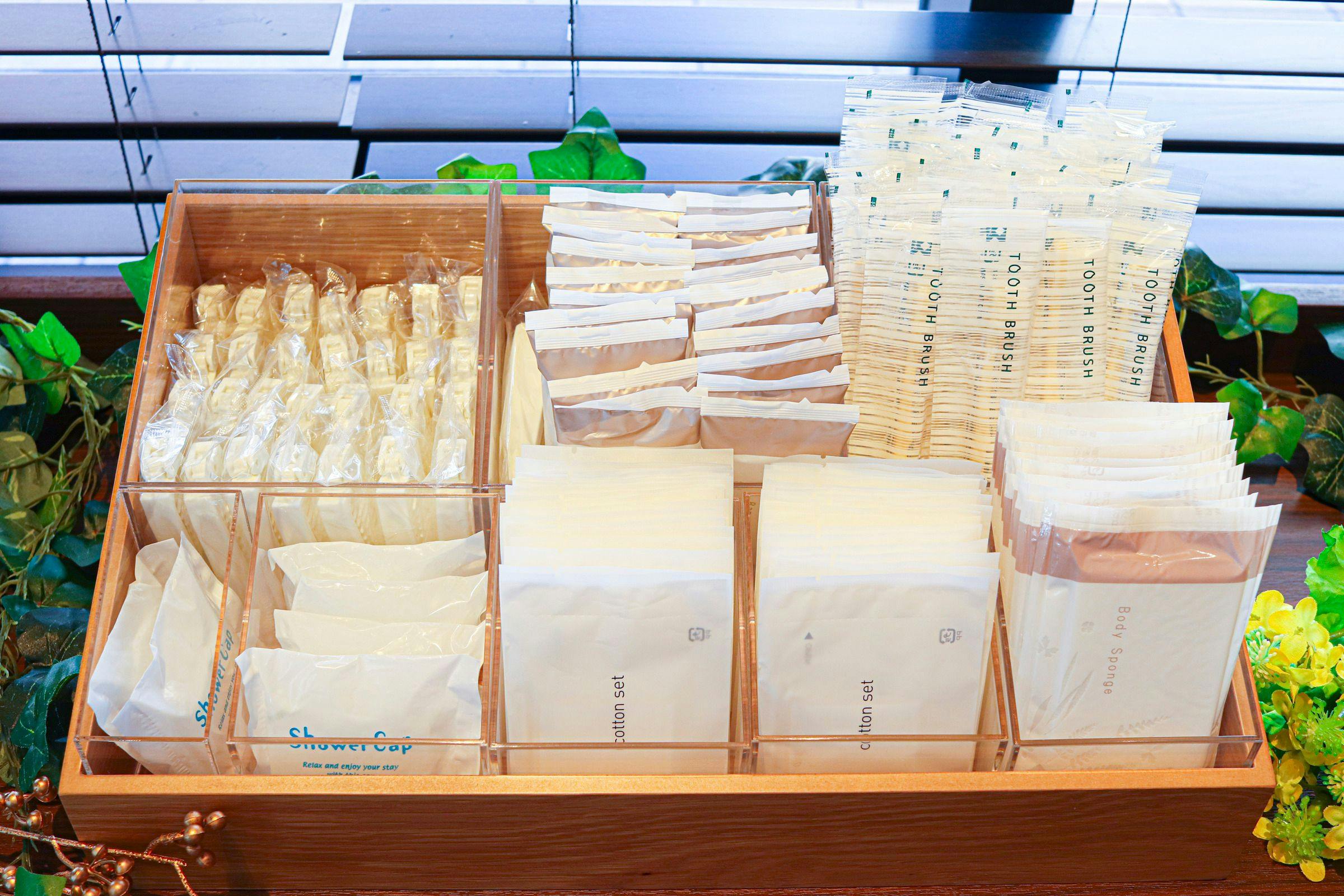 日和ホテルとして、POLAアロマエッセゴールドシリーズのバスアメニティや基礎化粧品、ヘアドライヤーとヘアアイロン、フットマッサージャーや靴乾燥機などお部屋の備品・アメニティ類を今までより充実させました。