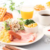ホテル1Fに併設のレストラン「Bangkok Night(バンコクナイト)」にて、 朝食ビュッフェを提供しております。 定番の卵料理やパンなどの洋食に加えて、トムヤムクンラーメンやトムヤムクンスープ、 タイ風お粥など本場のタイ料理もご用意しております。 営業時間/7:00~10:00提供終了 料金/大人:1,100円(税込)、4歳~12歳:660円 (税込)、4歳未満:無料