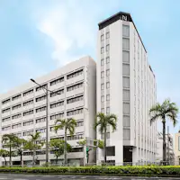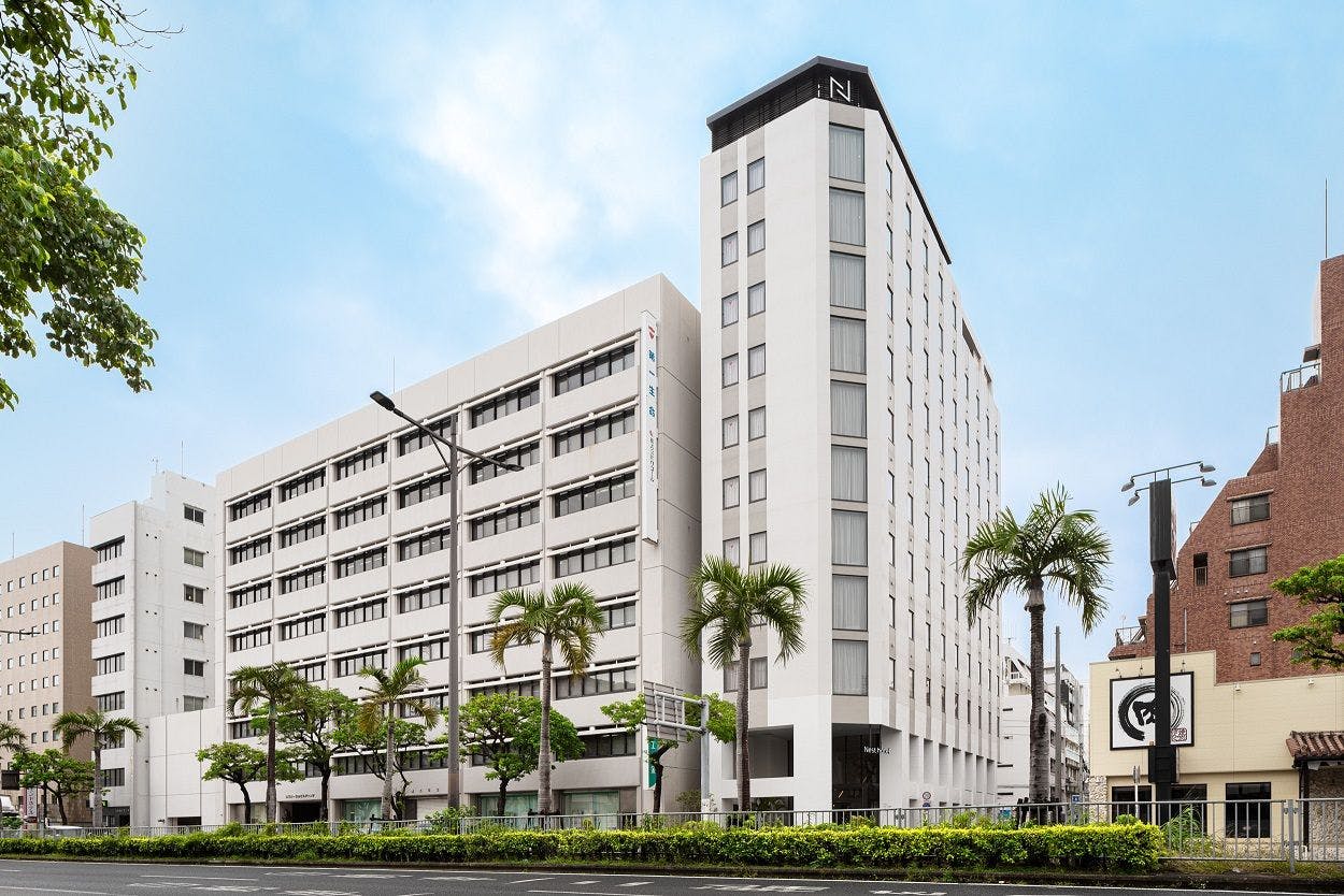 那覇空港より車で約8分。おしゃれなウッド調のロビーが心地よいモダン空間