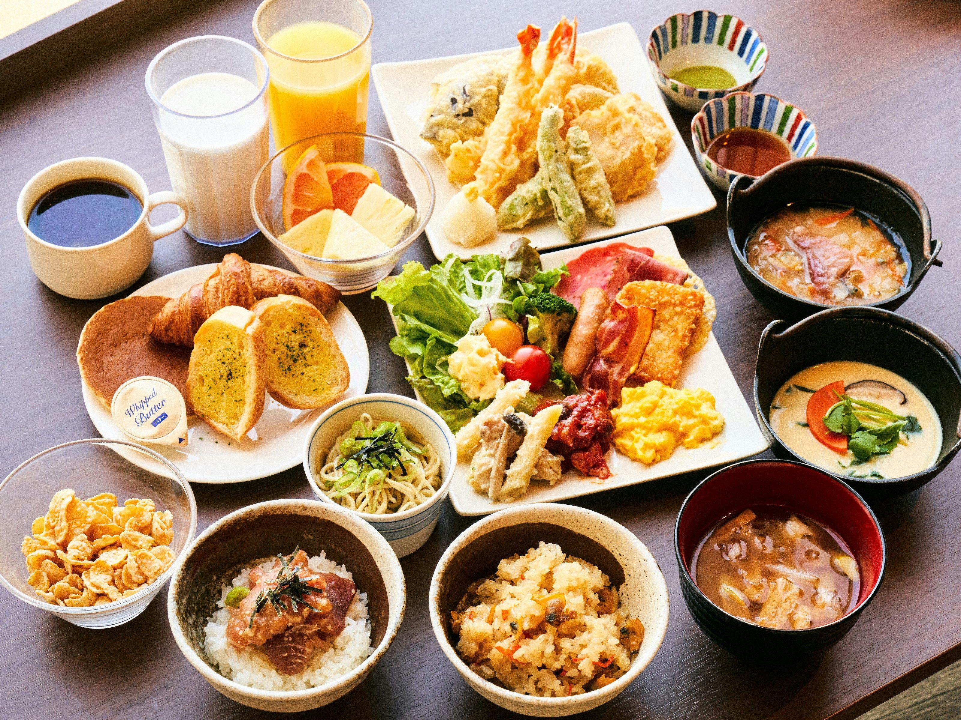 | 朝食 | 【 朝食のご案内 】 ■会場 館内3階レストラン ■時間 6:30~10:00(L.O. 9:30) 下町の名物から定番の人気メニューまで豊富にご用意! 京成リッチモンドホテル東京押上ならではのメニューを取り揃えた、こだわりの朝食をぜひご賞味くださいませ。 ご朝食は「ビュッフェスタイル」でご提供いたします。 サラダなどは小皿に取り分けてご用意しておりますので、お客様ご自身でお好みのものをお取りいただけます。 |