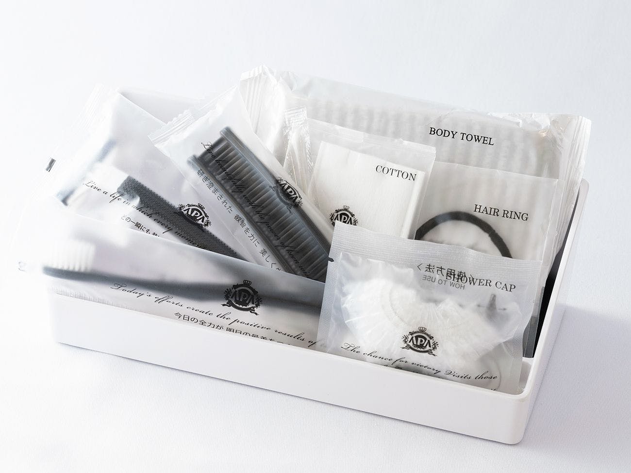 以下のアメニティをご用意しております。 シャンプー・リンス・ボディソープ・石鹸・タオル・バスタオル・ボディタオル・スポンジ・ハミガキセット・くし・ブラシ・シャワーキャップ・ドライヤー・髭剃り・浴衣・スリッパ・綿棒・コットン・衣類の消臭スプレー・冷蔵庫・お茶セット(無料)・テレビ・ビデオ・オン・デマンド