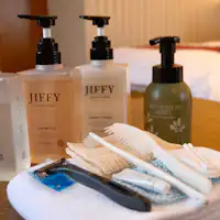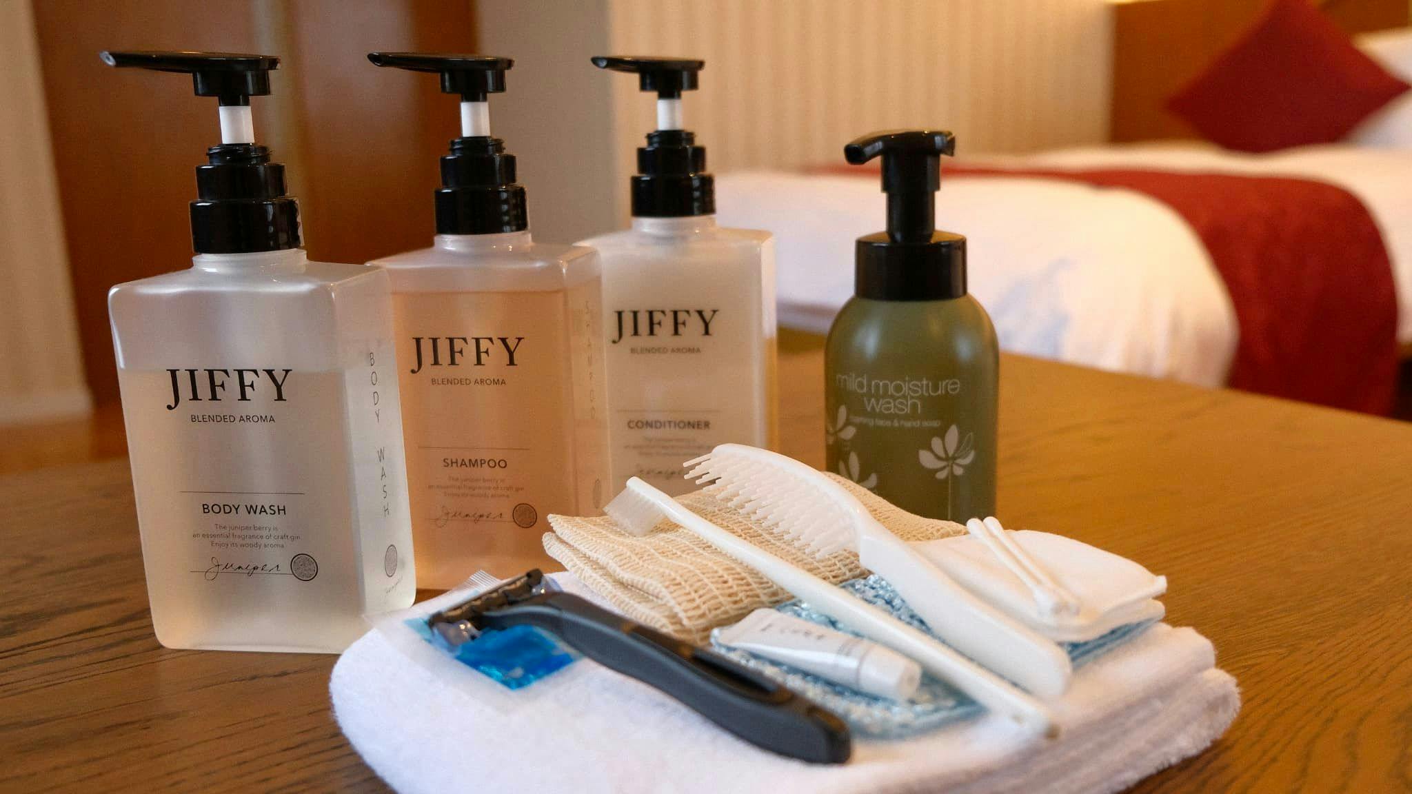 以下のアメニティをご用意しております。 シャンプー・リンス・ボディソープ・石鹸・タオル・バスタオル・ボディタオル・スポンジ・ハミガキセット・くし・ブラシ・シャワーキャップ・ドライヤー・髭剃り・ナイトウェア・スリッパ・綿棒・コットン・衣類の消臭スプレー・冷蔵庫・湯沸しポット・お茶セット(無料)・テレビ・CDプレイヤー