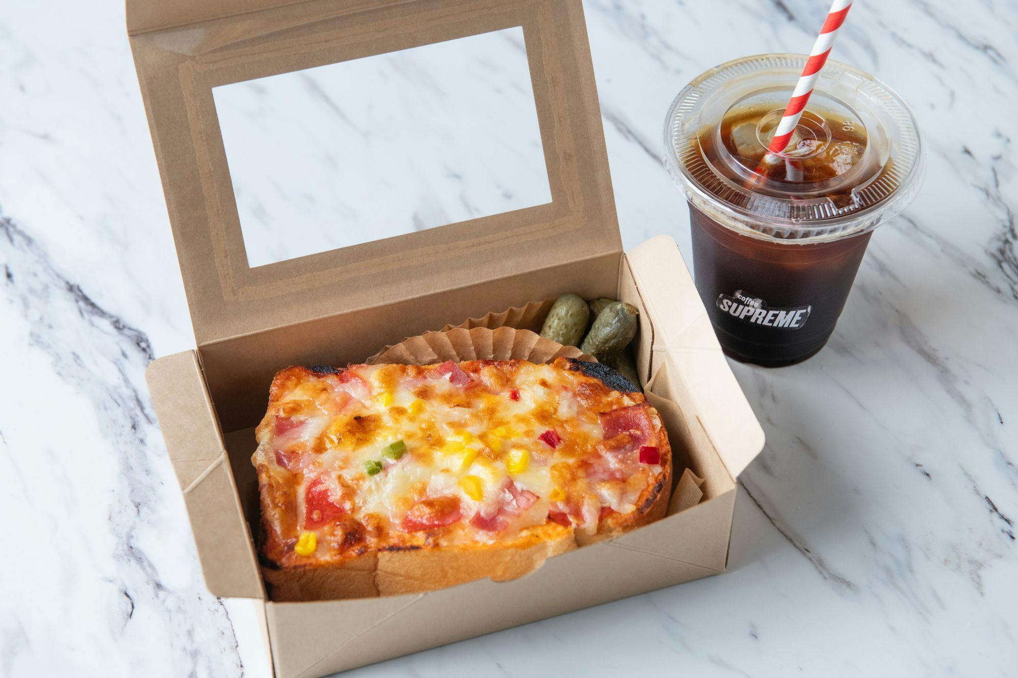 1F カフェ(7:00-10:00/L.O9:30) 1Fカフェスペースでは、ニュージーランドで誕生したスペシャルティコーヒーロースターカンパニーであるCoffee Supreme監修メニューを提供しており、コーヒー豆もハウスブレンドである”Supreme Blend"を使用しております。フルボディで深みがあるコーヒーと相性のよい朝食をお楽しみください。 提供メニュー:ピザトーストorグラノーラヨーグルト(ドリンク付)